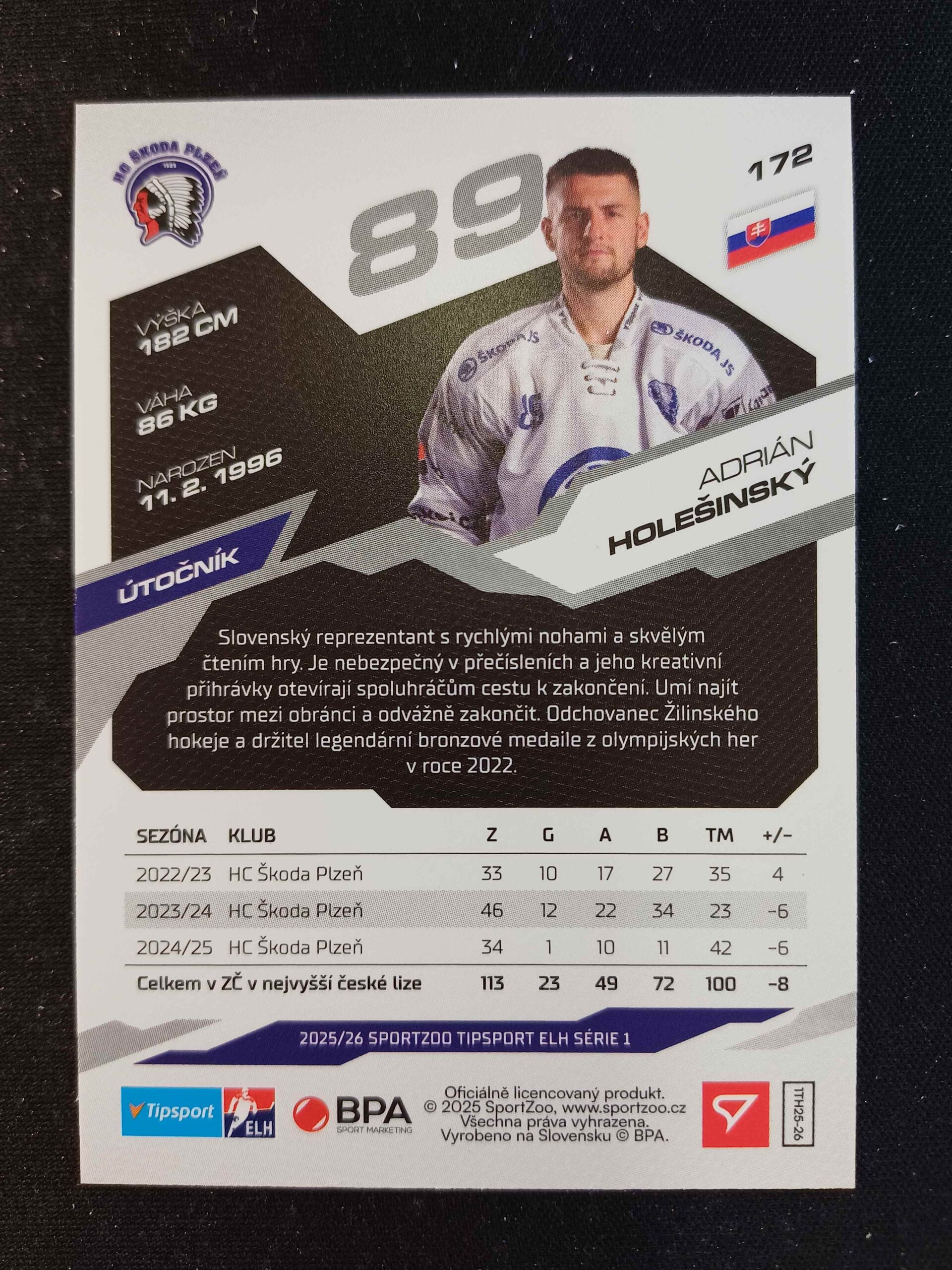 Sběratelská karta 2025/2026 Sportzoo Serie 1 Base 172 Adrián Holešinský