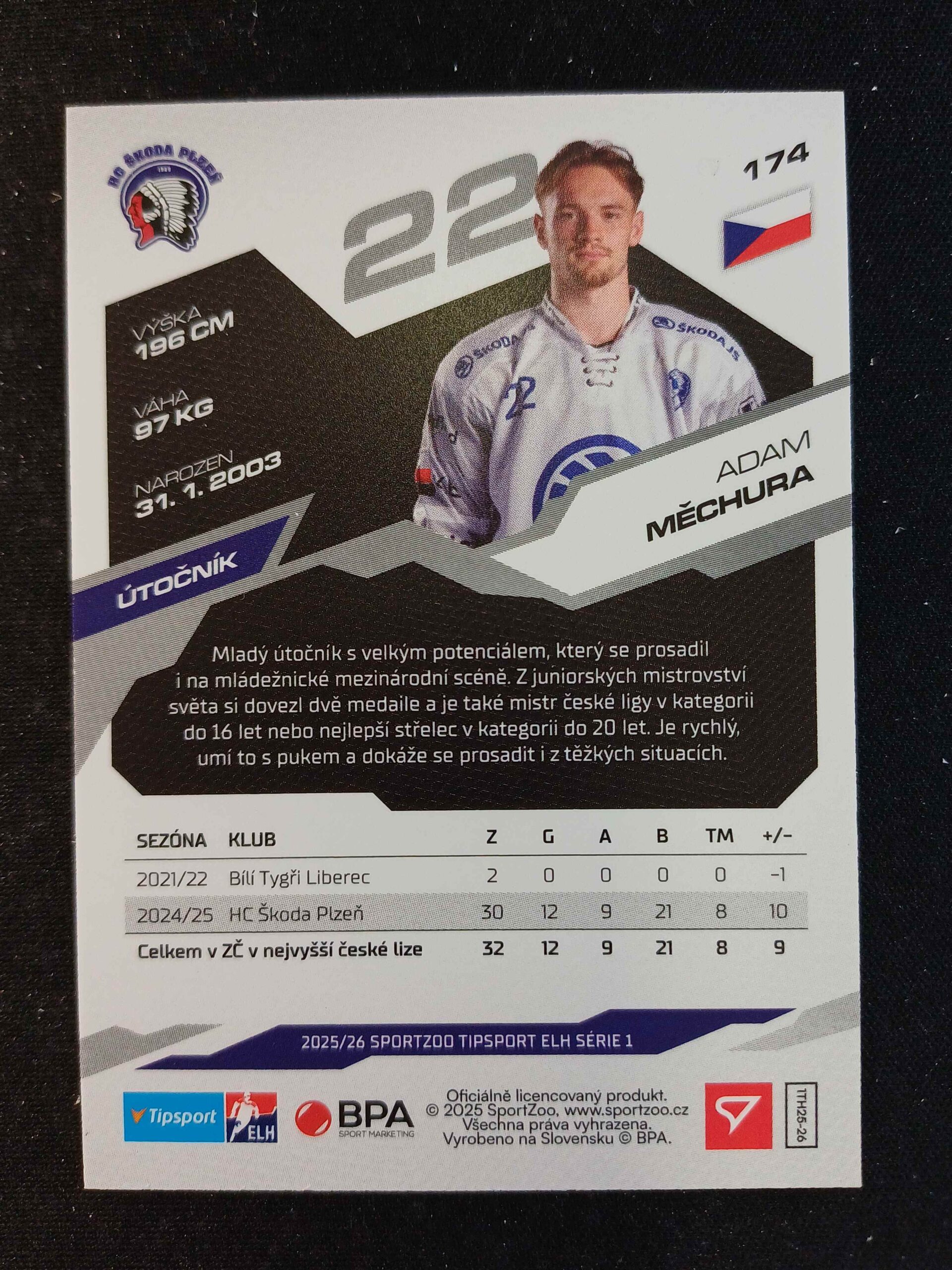 Sběratelská karta 2025/2026 Sportzoo Serie 1 Base 174 Adam Měchura