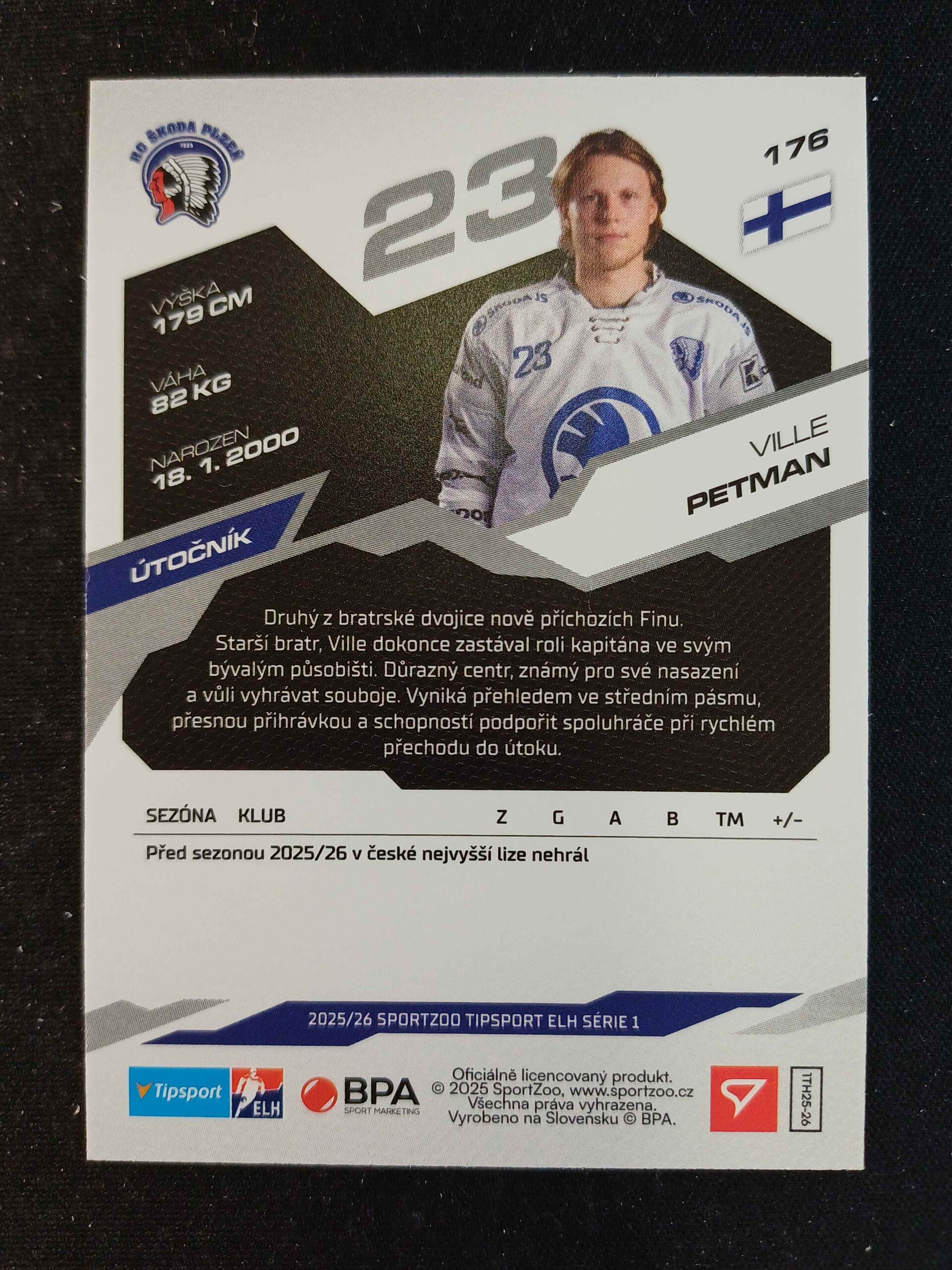 Sběratelská karta 2025/2026 Sportzoo Serie 1 Base 176 Ville Petman
