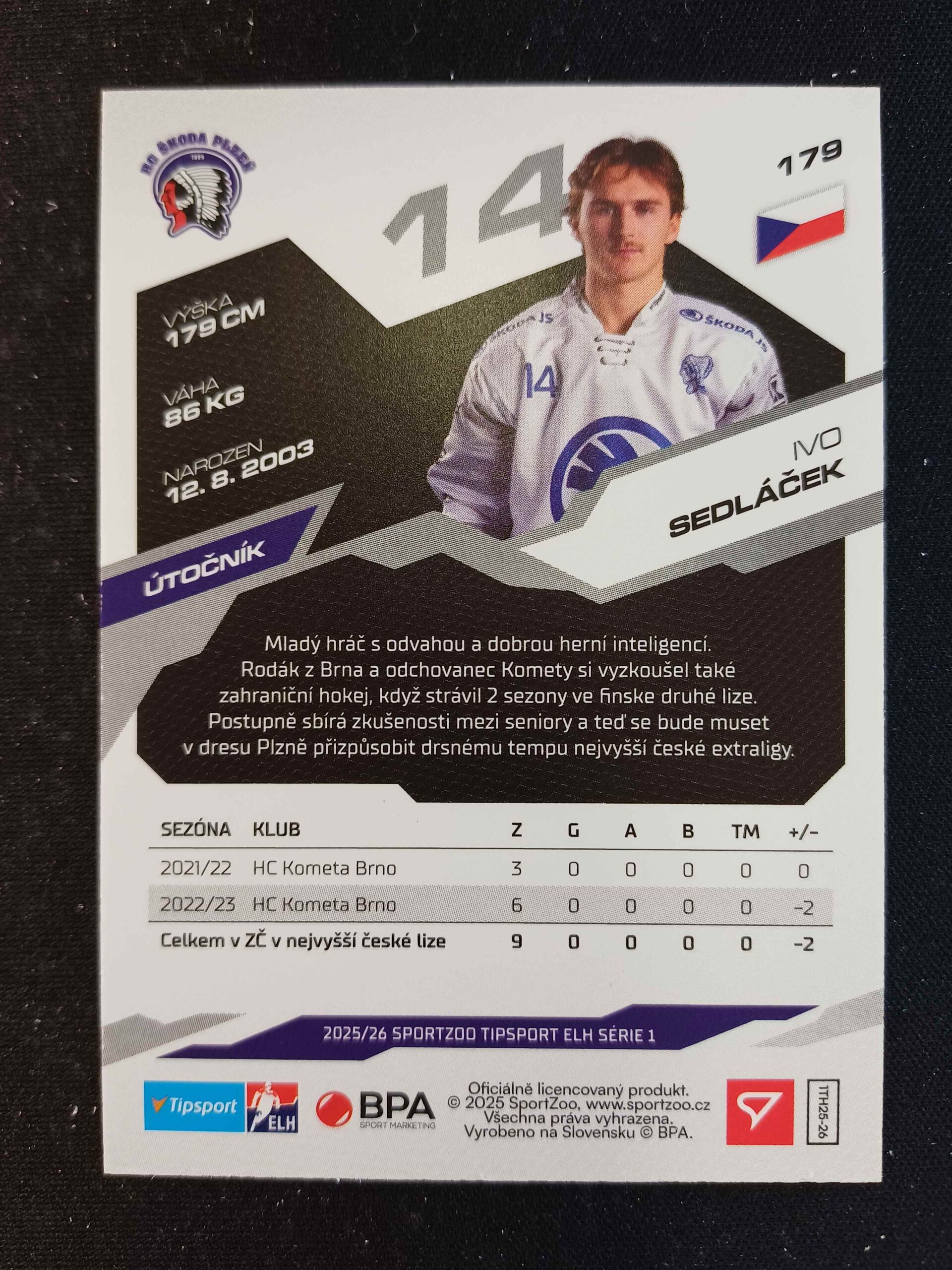 Sběratelská karta 2025/2026 Sportzoo Serie 1 Base 179 Ivo Sedláček