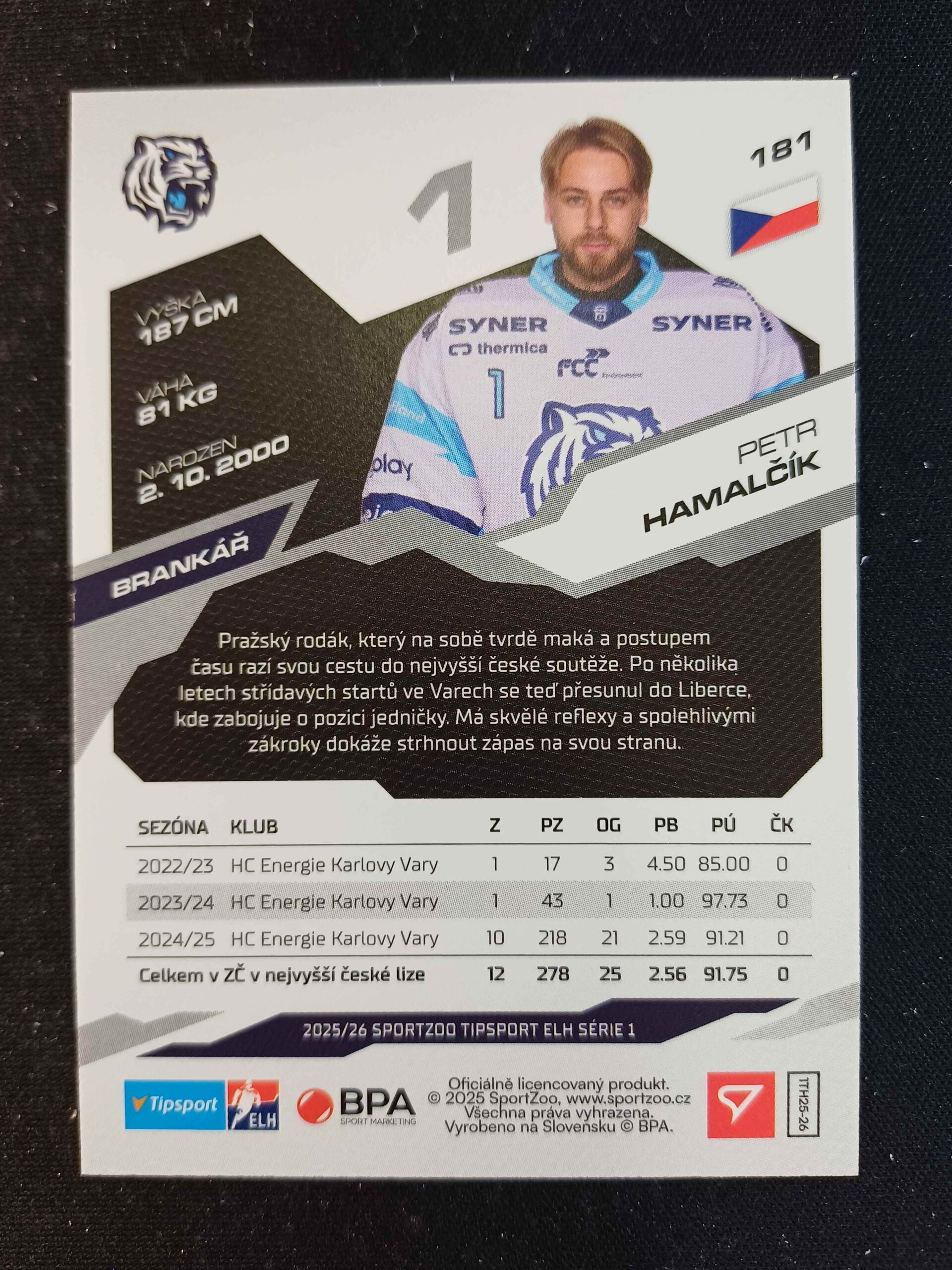 Sběratelská karta 2025/2026 Sportzoo Serie 1 Base 181 Petr Hamalčík
