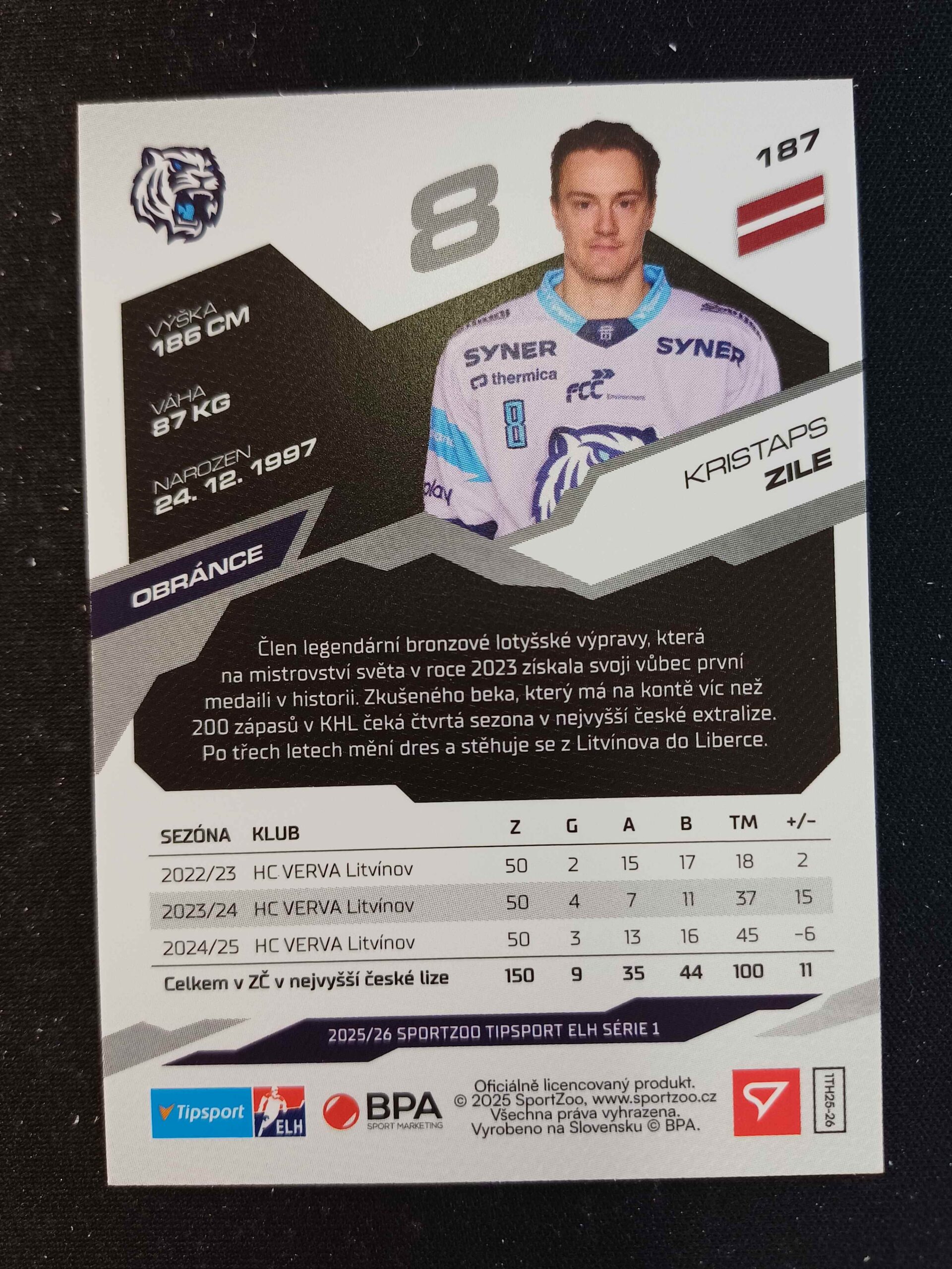 Sběratelská karta 2025/2026 Sportzoo Serie 1 Base 187 Kristaps Zile