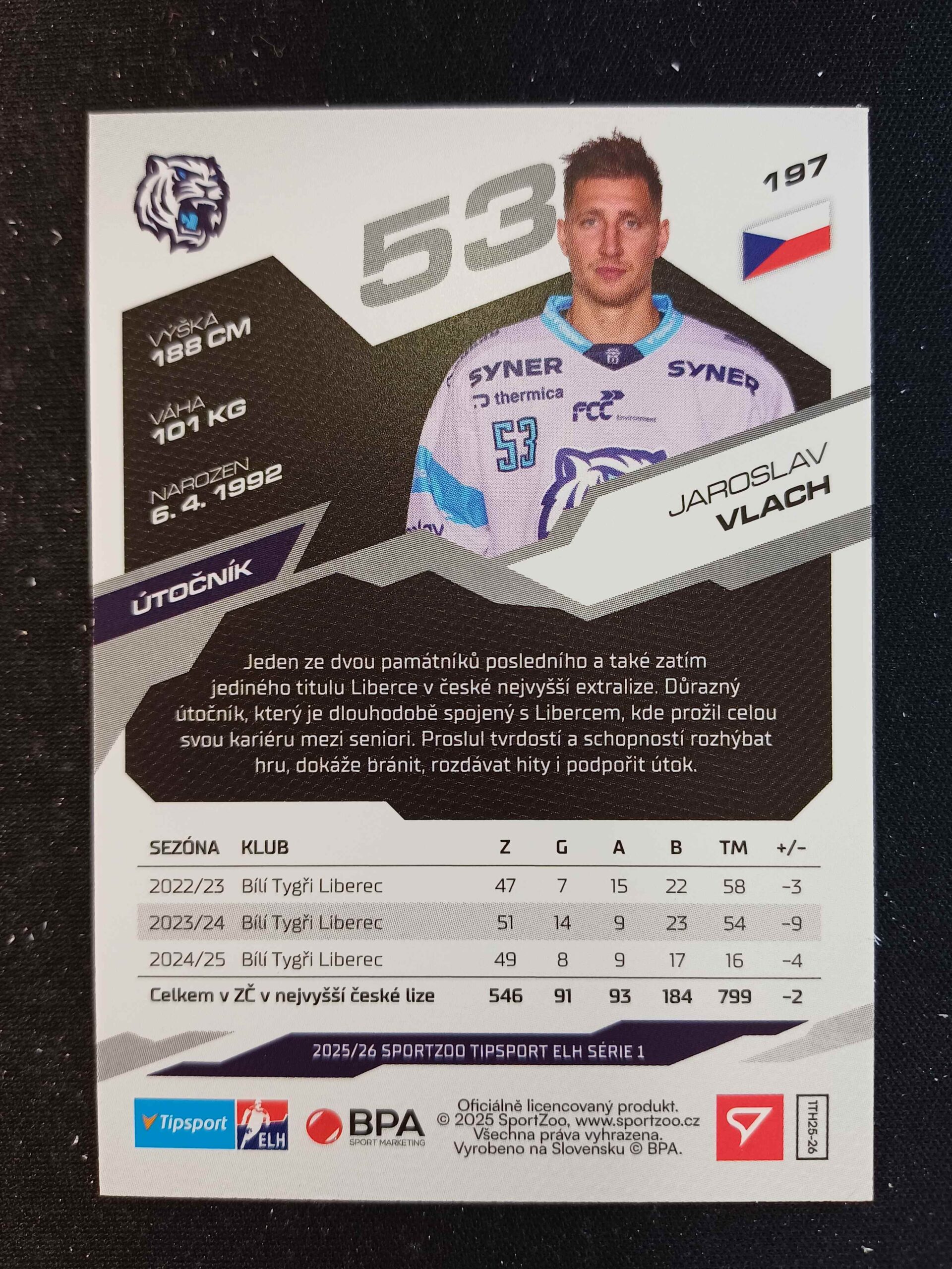 Sběratelská karta 2025/2026 Sportzoo Serie 1 Base 197 Jaroslav Vlach