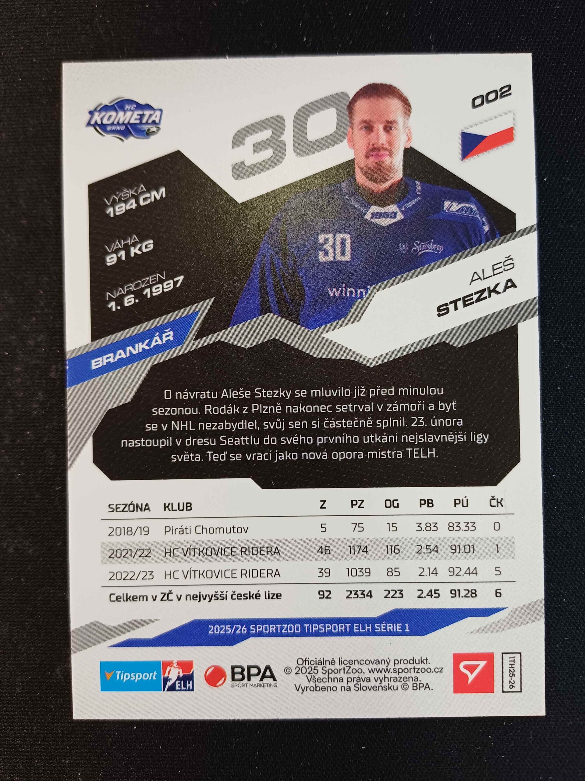 Sběratelská karta 2025/2026 Sportzoo Serie 1 Base 2 Aleš Stezka