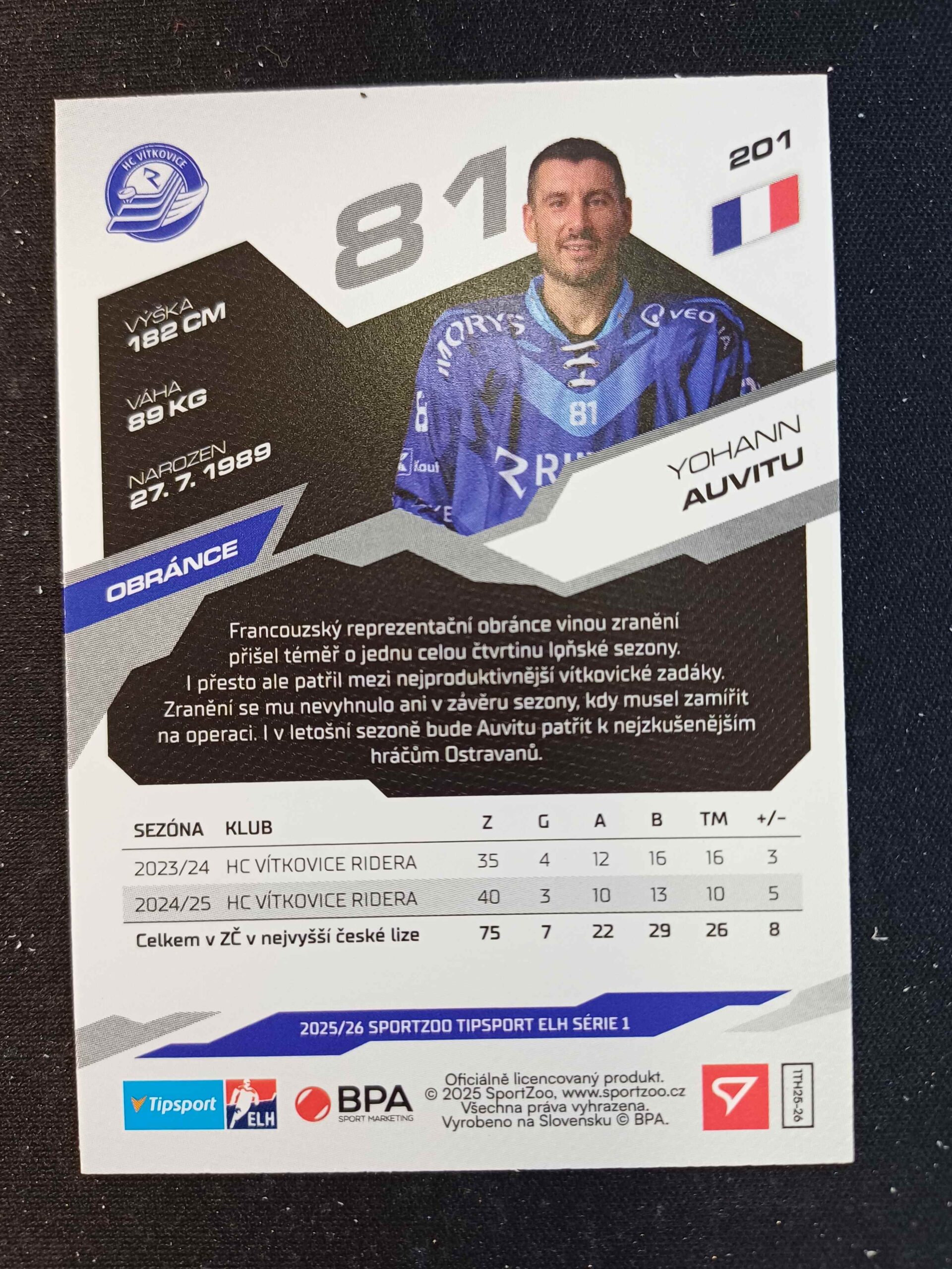 Sběratelská karta 2025/2026 Sportzoo Serie 1 Base 201 Yohann Auvitu