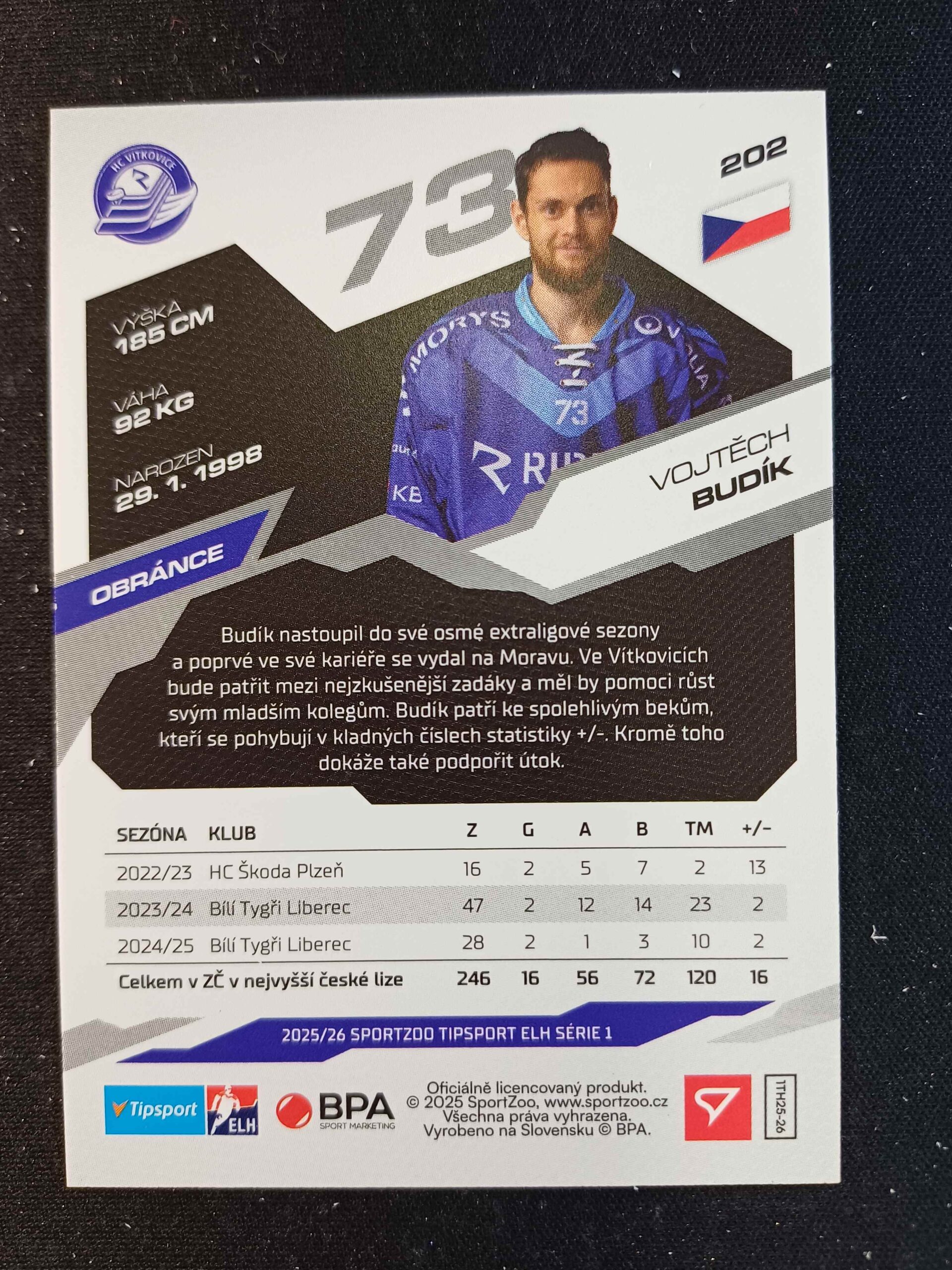 Sběratelská karta 2025/2026 Sportzoo Serie 1 Base 202 Vojtěch Budík