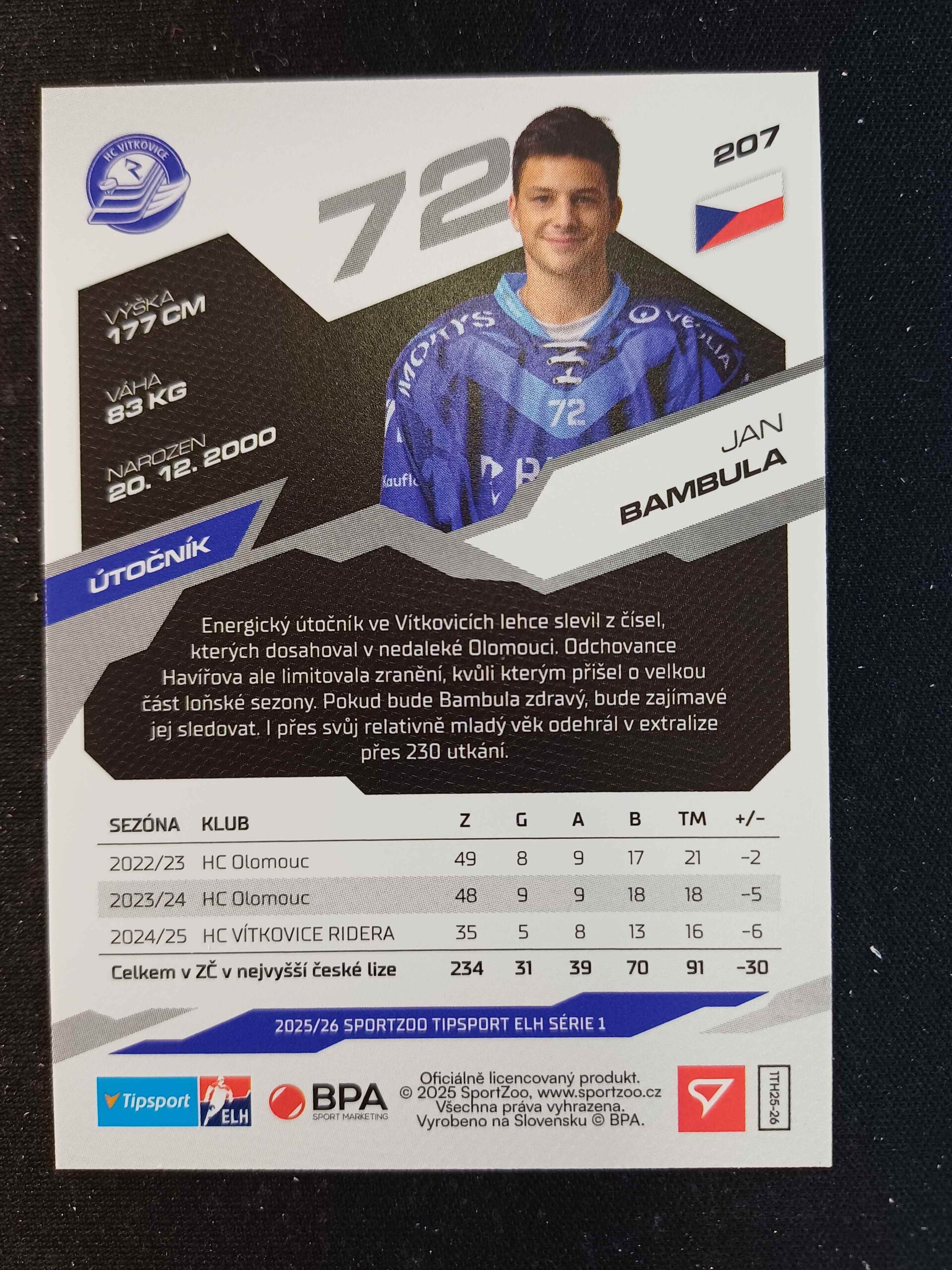 Sběratelská karta 2025/2026 Sportzoo Serie 1 Base 207 Jan Bambula