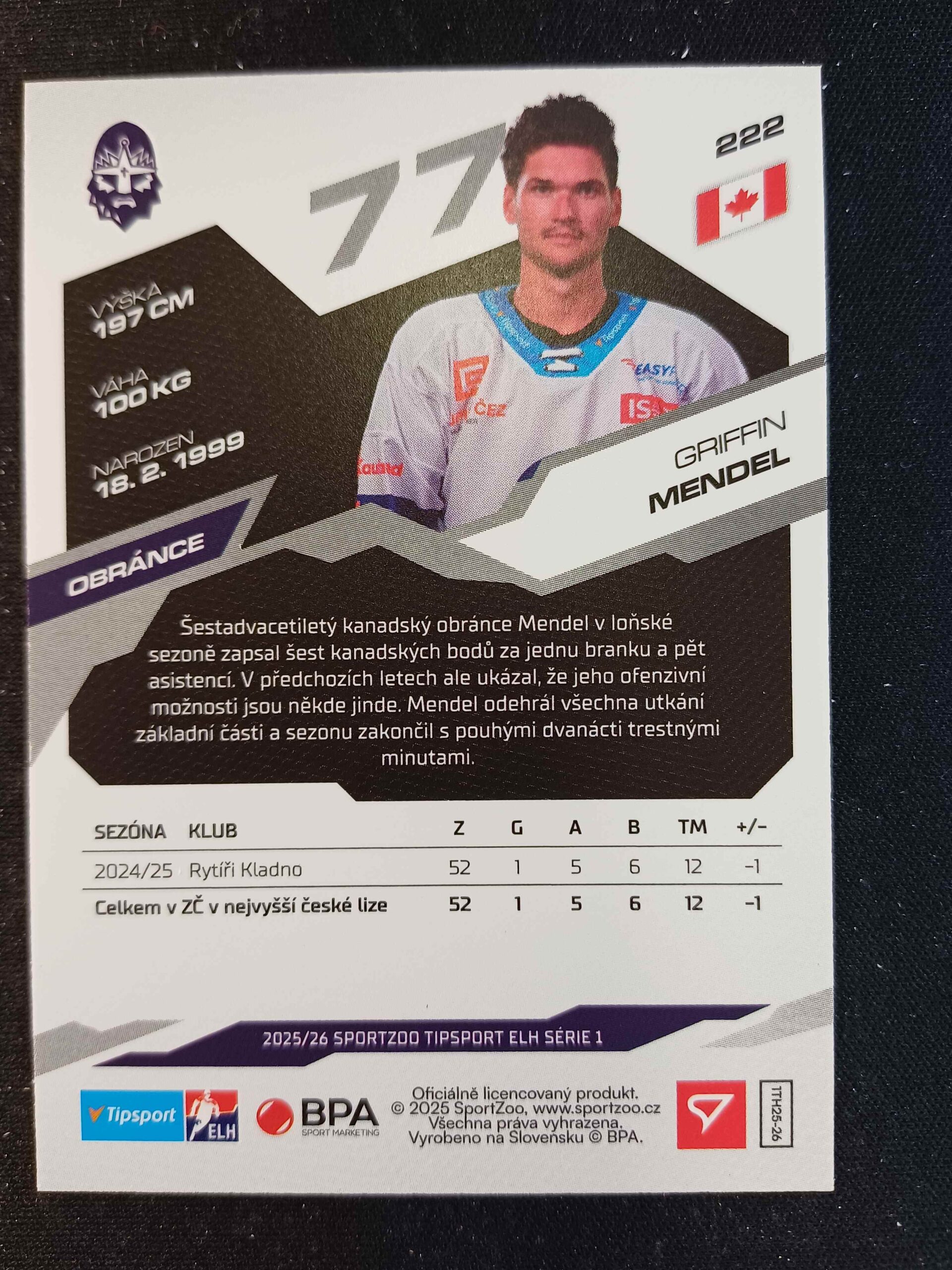 Sběratelská karta 2025/2026 Sportzoo Serie 1 Base 222 Griffin Mendel