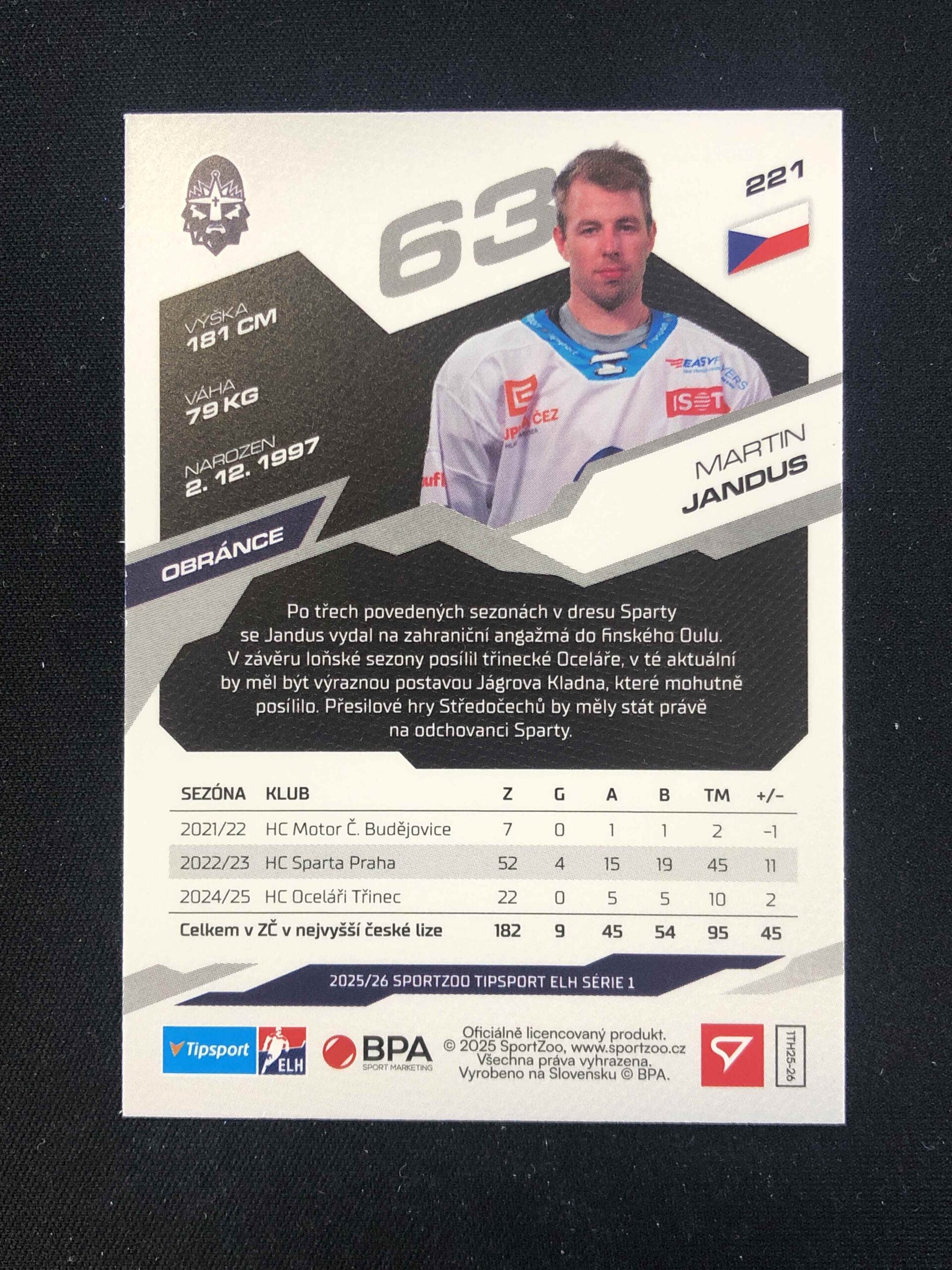 Sběratelská karta 2025/2026 Sportzoo Serie 1 Base 221 Martin Jandus