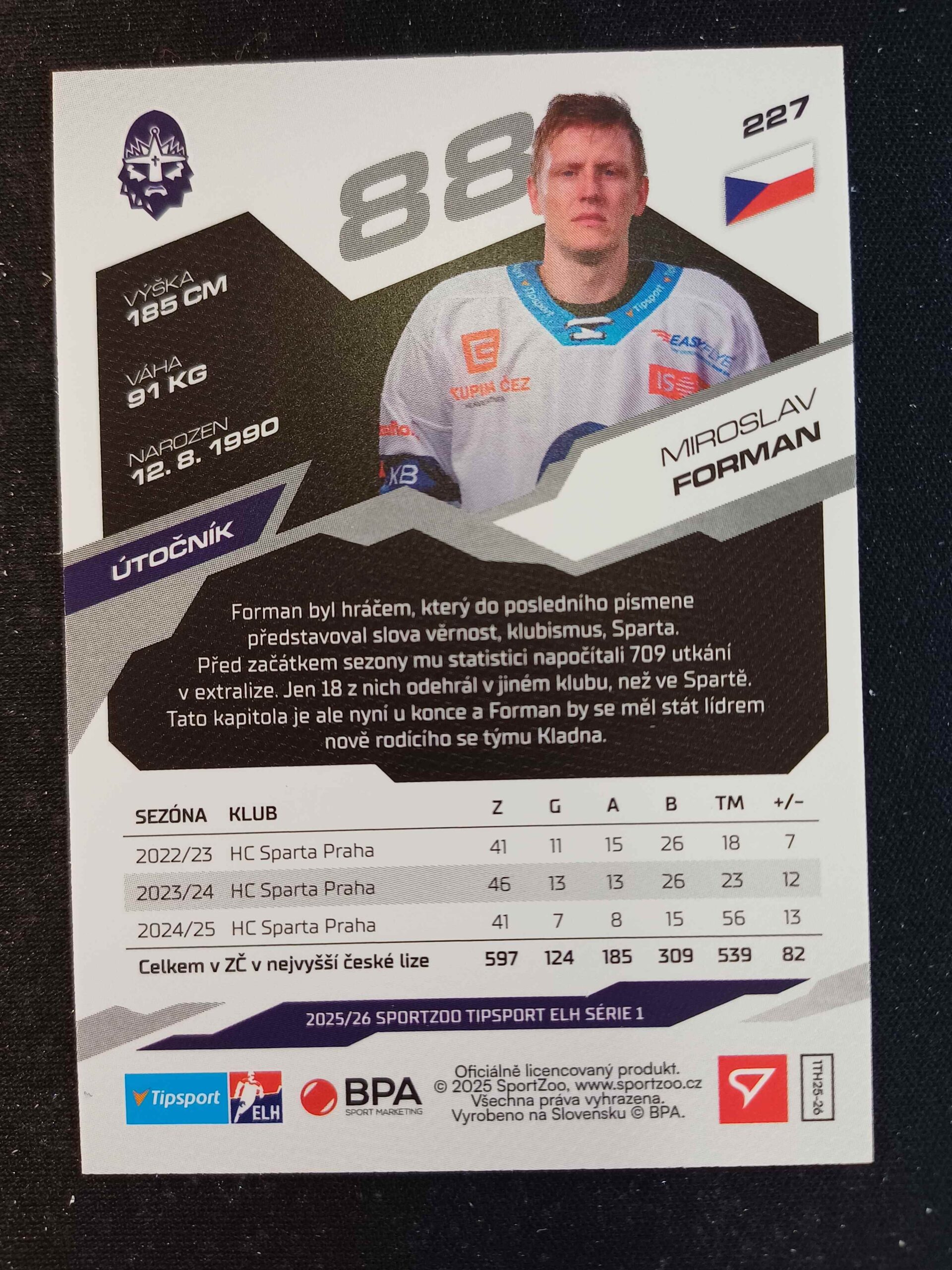 Sběratelská karta 2025/2026 Sportzoo Serie 1 Base 227 Miroslav Forman