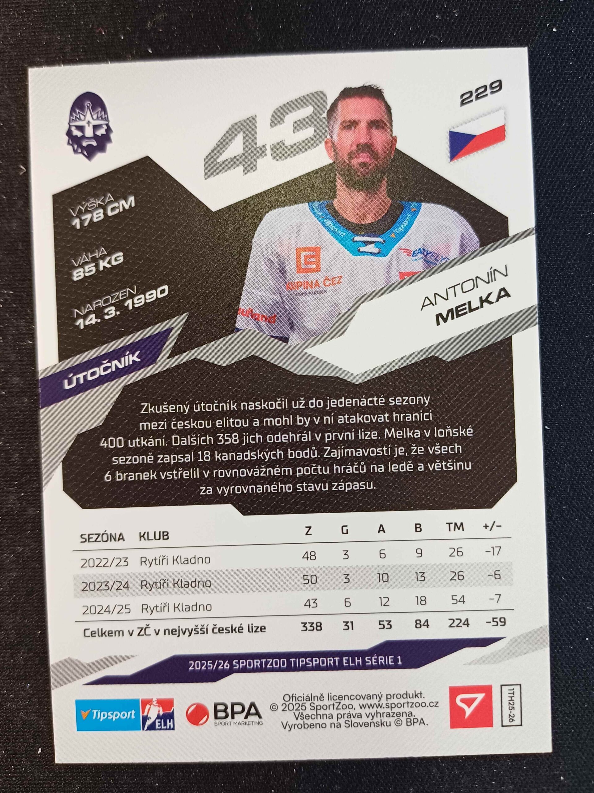Sběratelská karta 2025/2026 Sportzoo Serie 1 Base 229 Antonín Melka