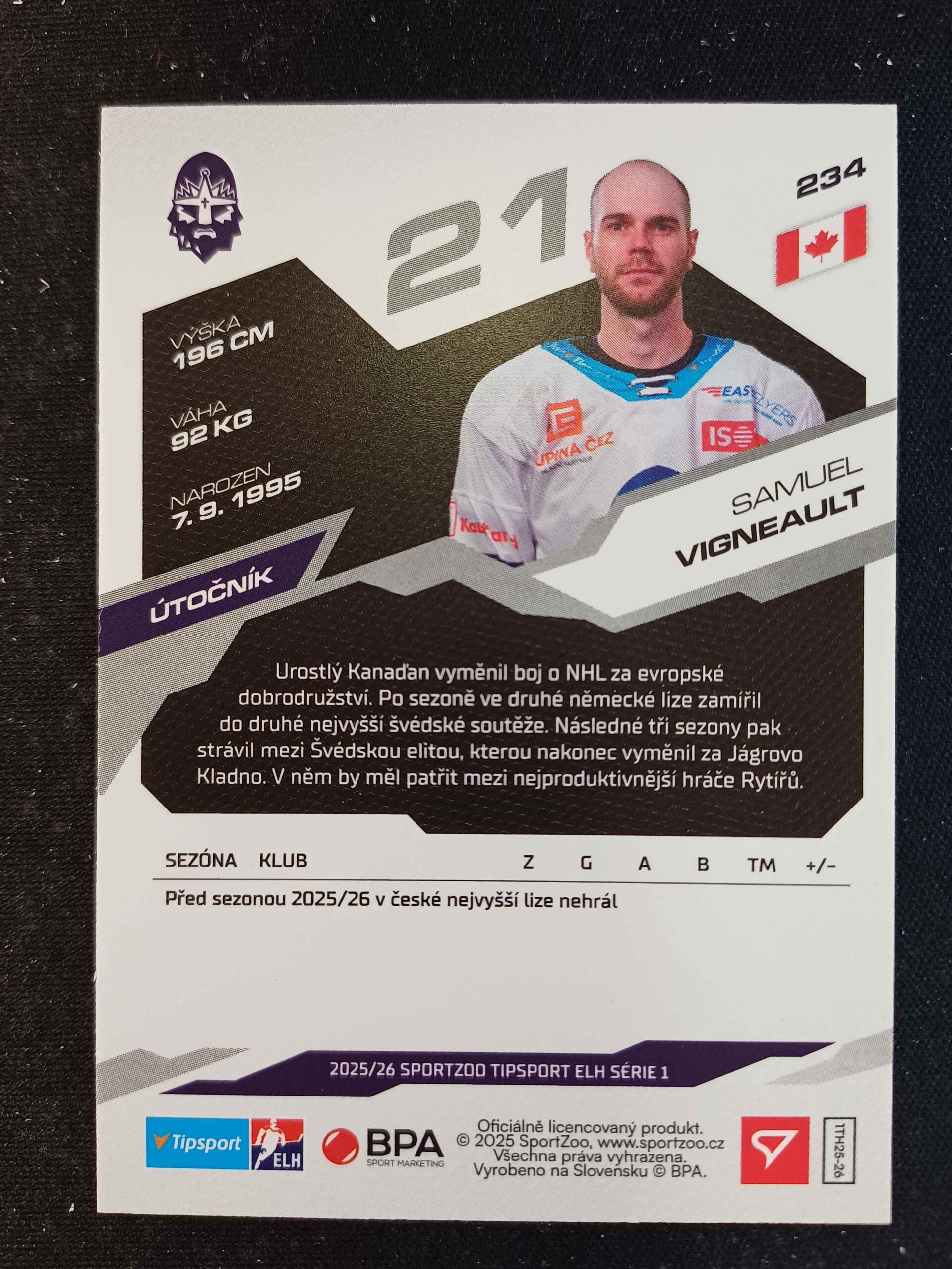 Sběratelská karta 2025/2026 Sportzoo Serie 1 Base 234 Samuel Vigneault