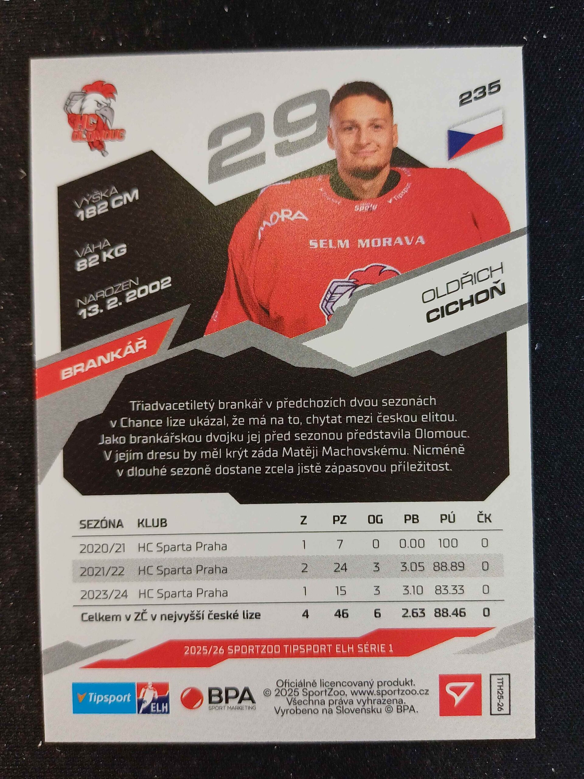 Sběratelská karta 2025/2026 Sportzoo Serie 1 Base 235 Oldřich Cichoň