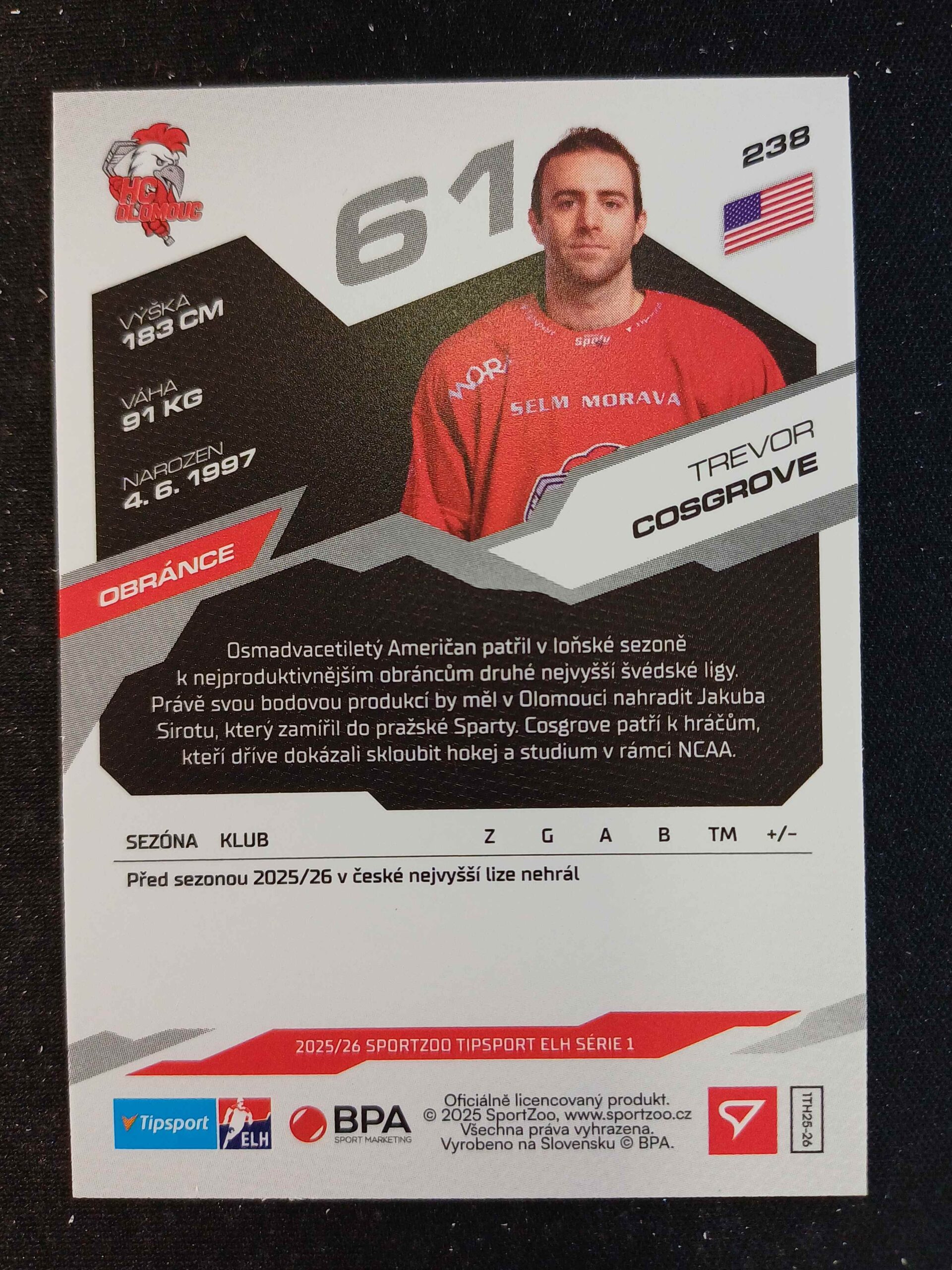 Sběratelská karta 2025/2026 Sportzoo Serie 1 Base 238 Trevor Cosgrove