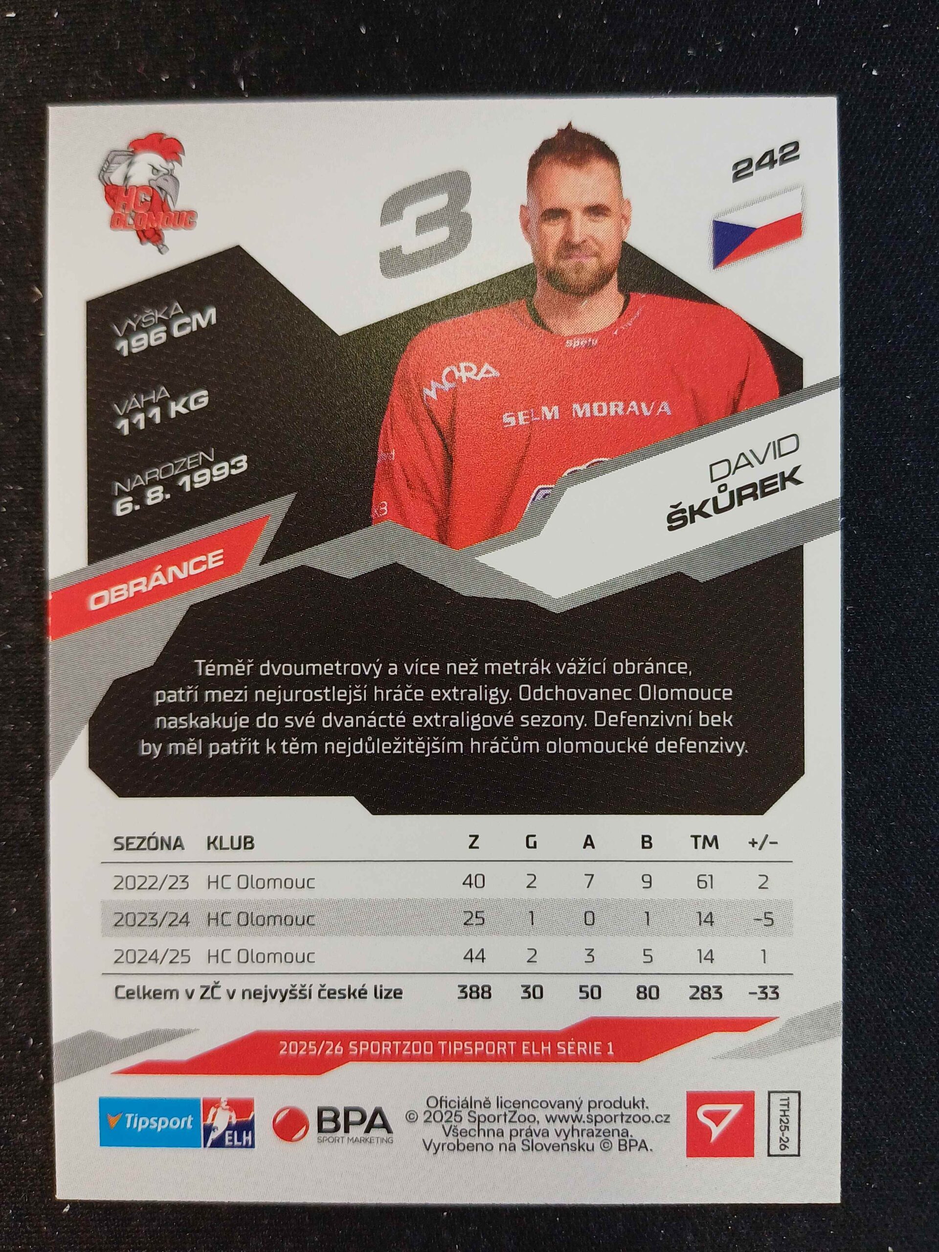 Sběratelská karta 2025/2026 Sportzoo Serie 1 Base 242 David Škůrek