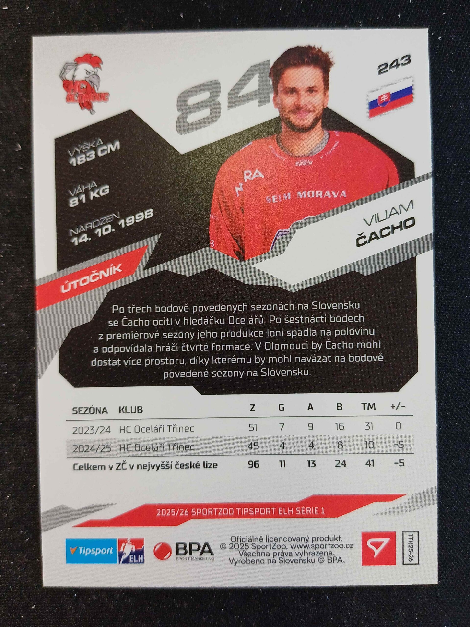 Sběratelská karta 2025/2026 Sportzoo Serie 1 Base 243 Viliam Čacho