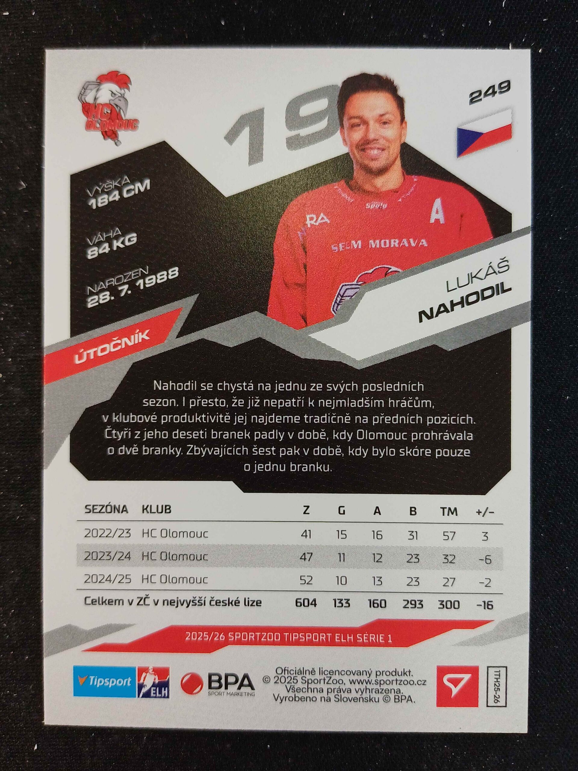 Sběratelská karta 2025/2026 Sportzoo Serie 1 Base 249 Lukáš Nahodil
