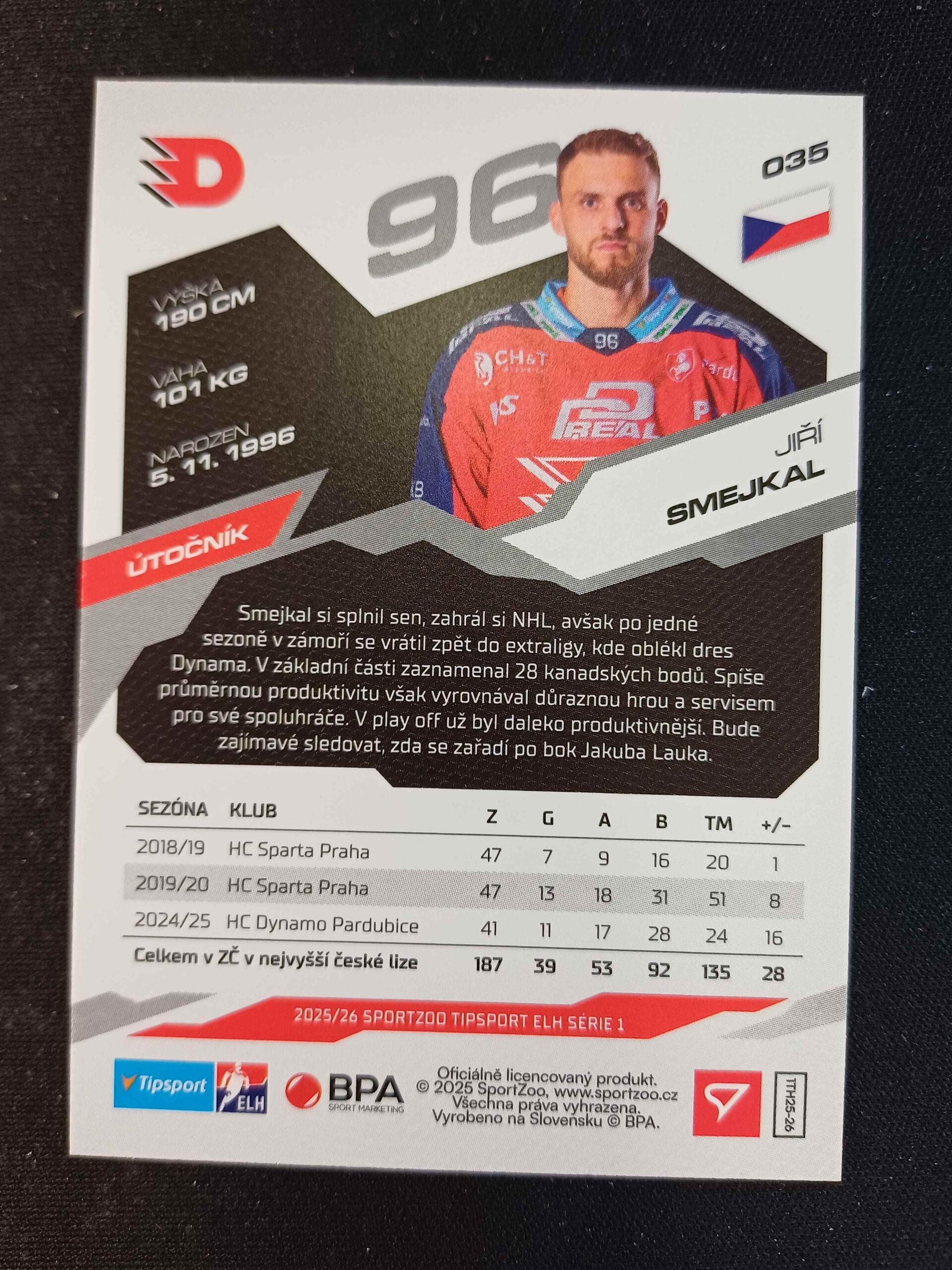 Sběratelská karta 2025/2026 Sportzoo Serie 1 Base 35 Jiří Smejkal
