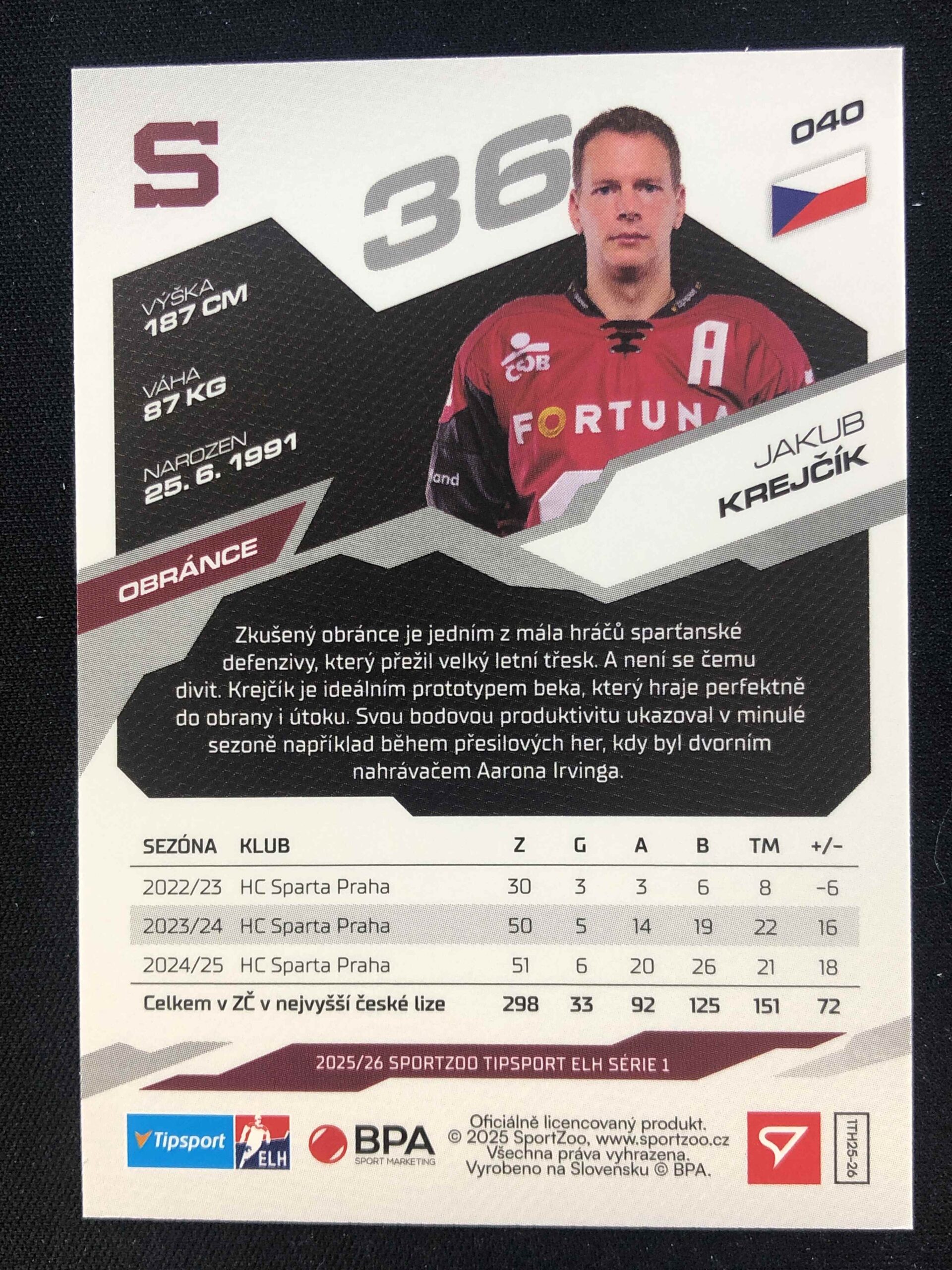 Sběratelská karta 2025/2026 Sportzoo Serie 1 Base 40 Jakub Krejčík