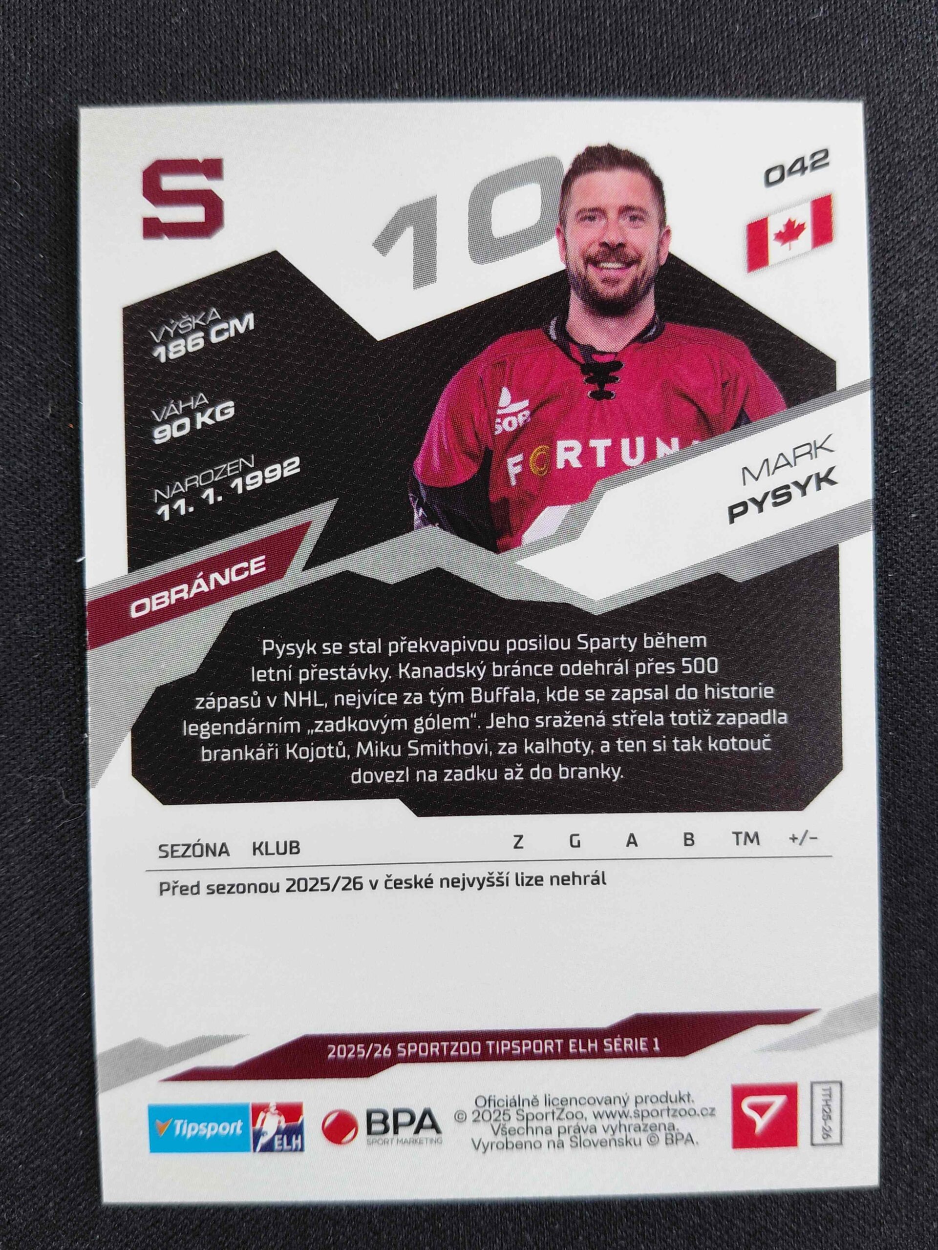 Sběratelská karta 2025/2026 Sportzoo Serie 1 Base 42 Mark Pysyk