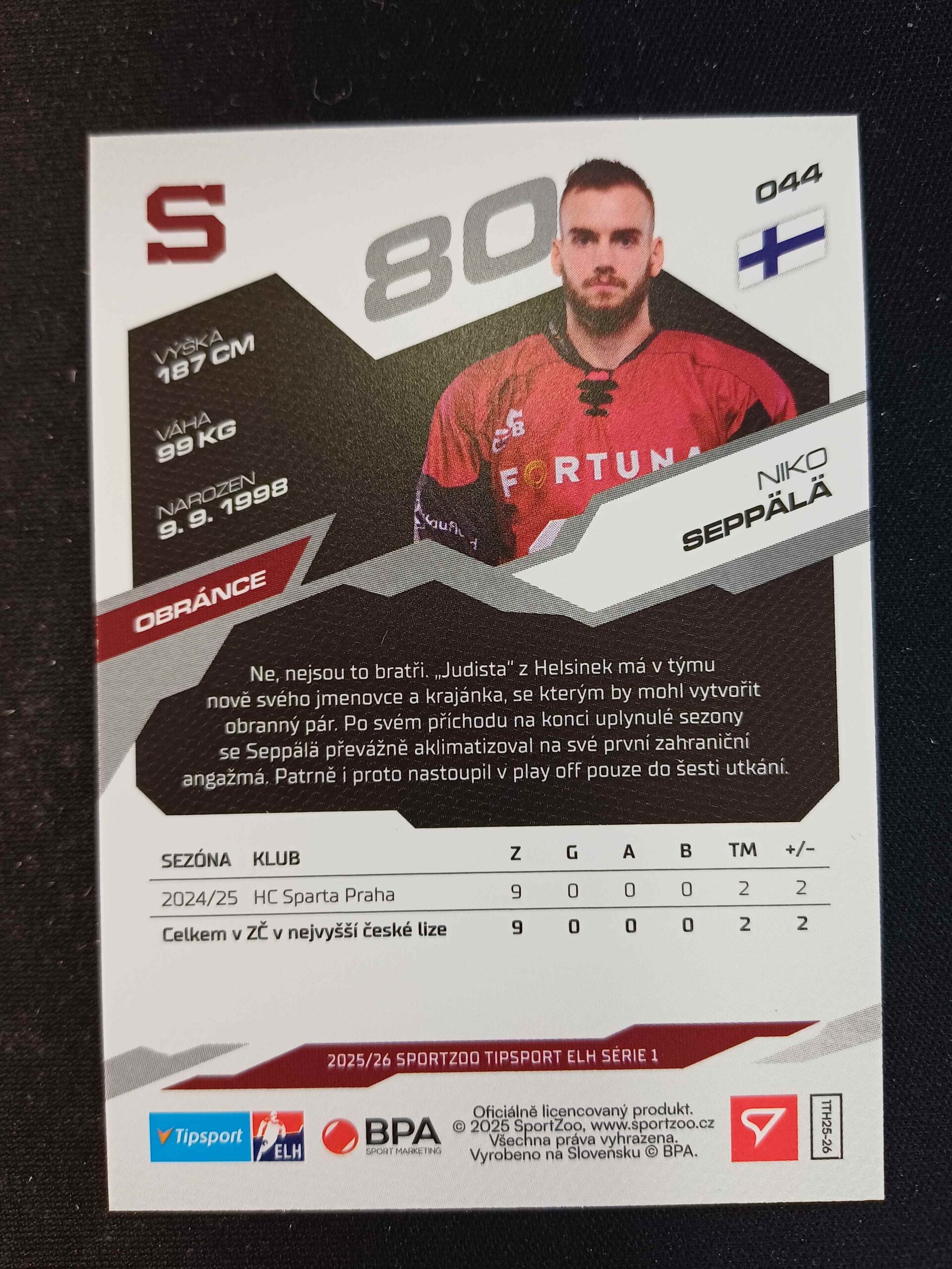 Sběratelská karta 2025/2026 Sportzoo Serie 1 Base 44 Niko Seppälä