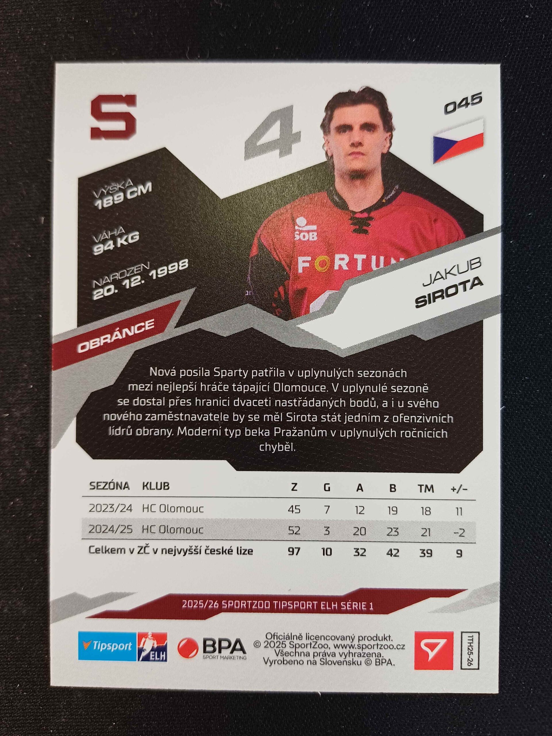 Sběratelská karta 2025/2026 Sportzoo Serie 1 Base 45 Jakub Sirota