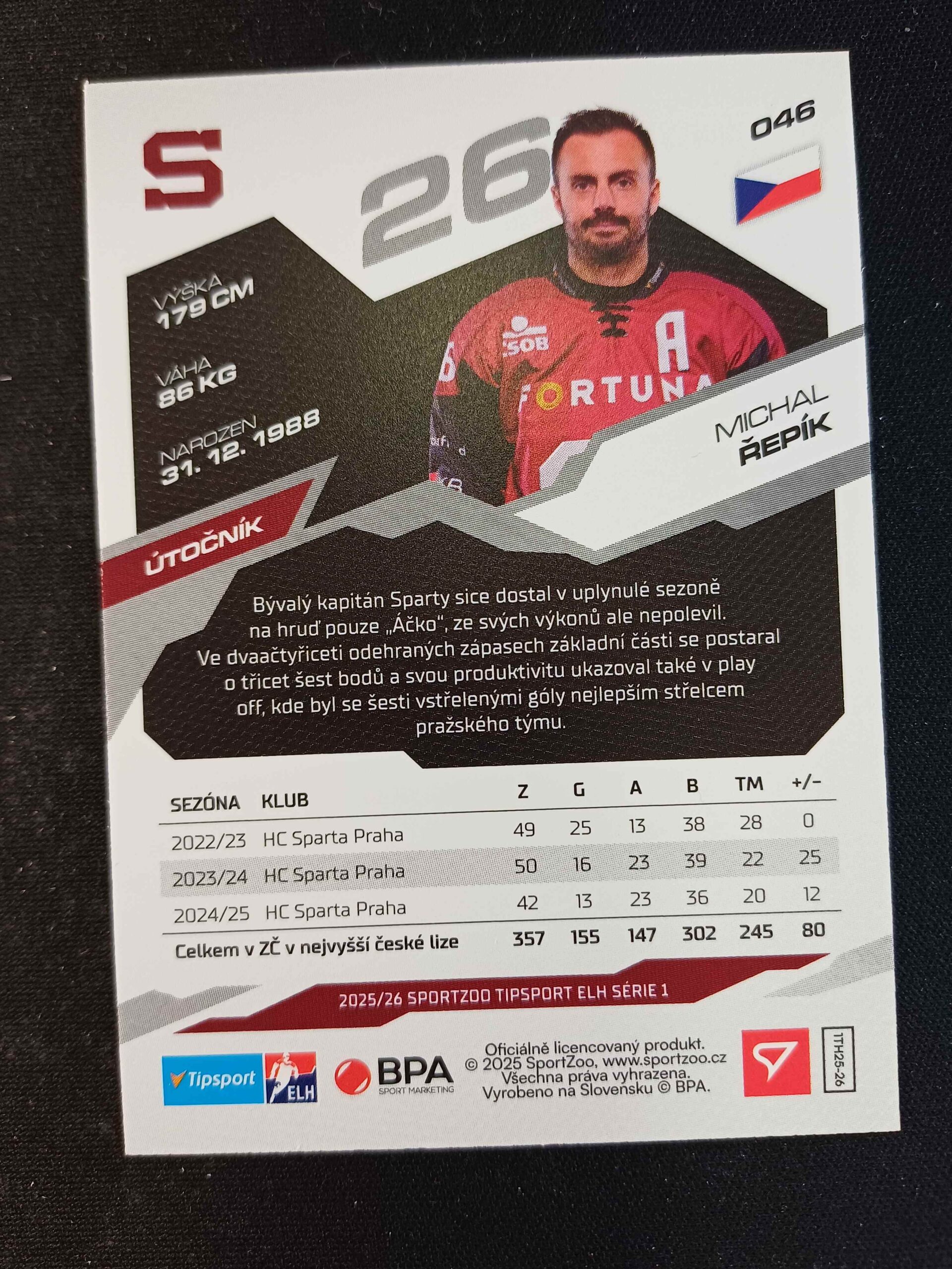 Sběratelská karta 2025/2026 Sportzoo Serie 1 Base 46 Michal Řepík