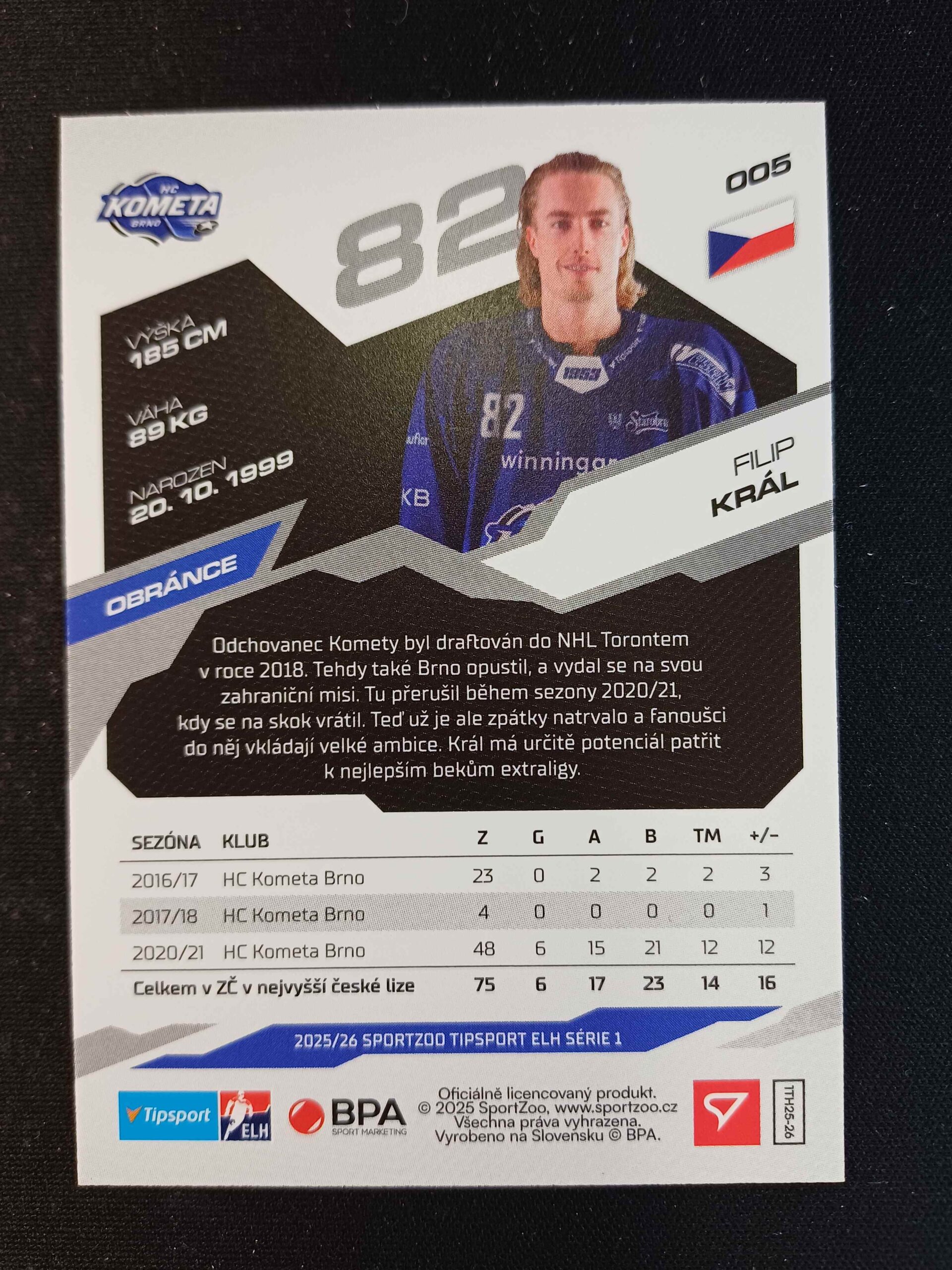 Sběratelská karta 2025/2026 Sportzoo Serie 1 Base 5 Filip Král