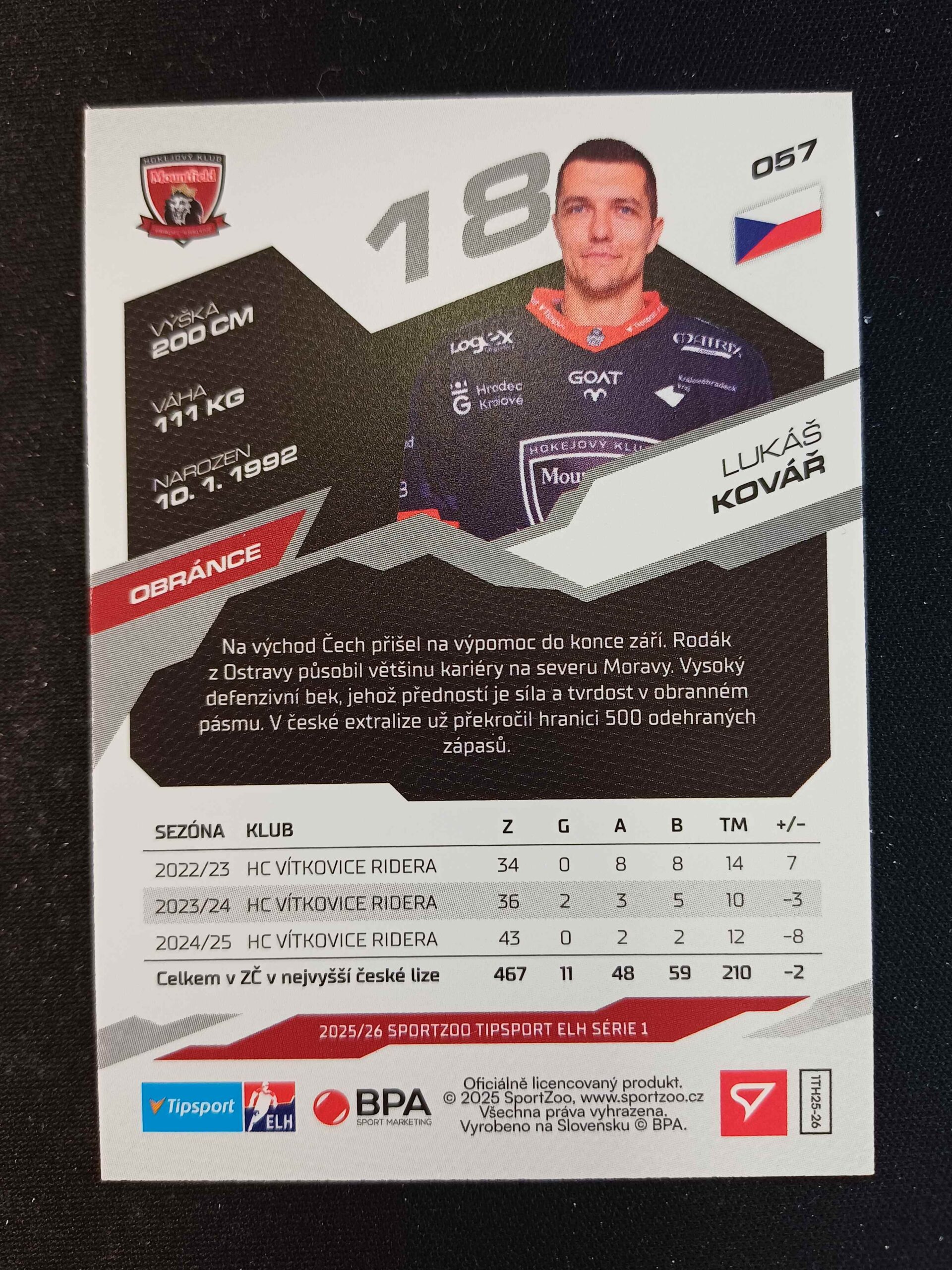 Sběratelská karta 2025/2026 Sportzoo Serie 1 Base 57 Lukáš Kovář