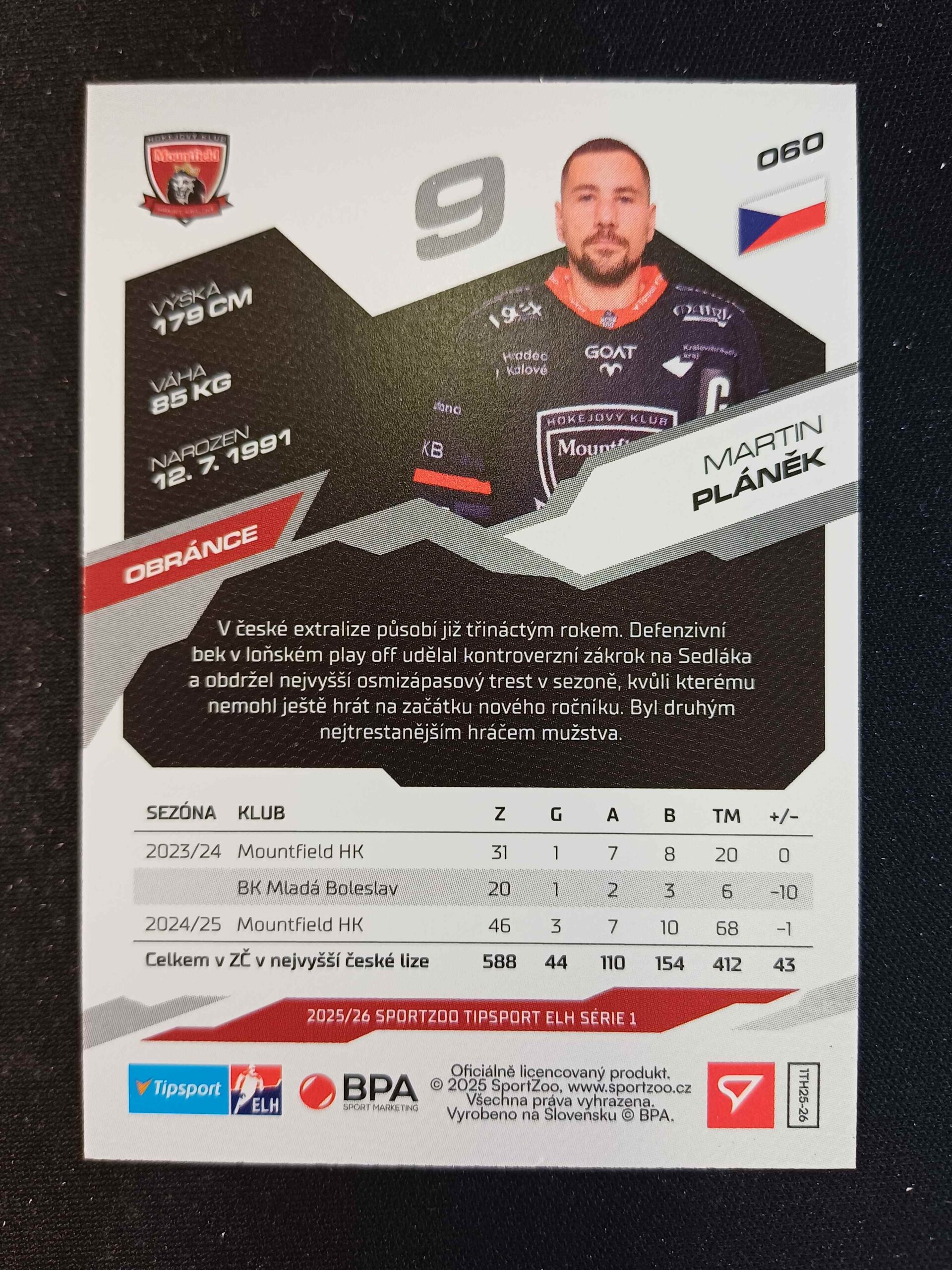 Sběratelská karta 2025/2026 Sportzoo Serie 1 Base 60 Martin Pláněk