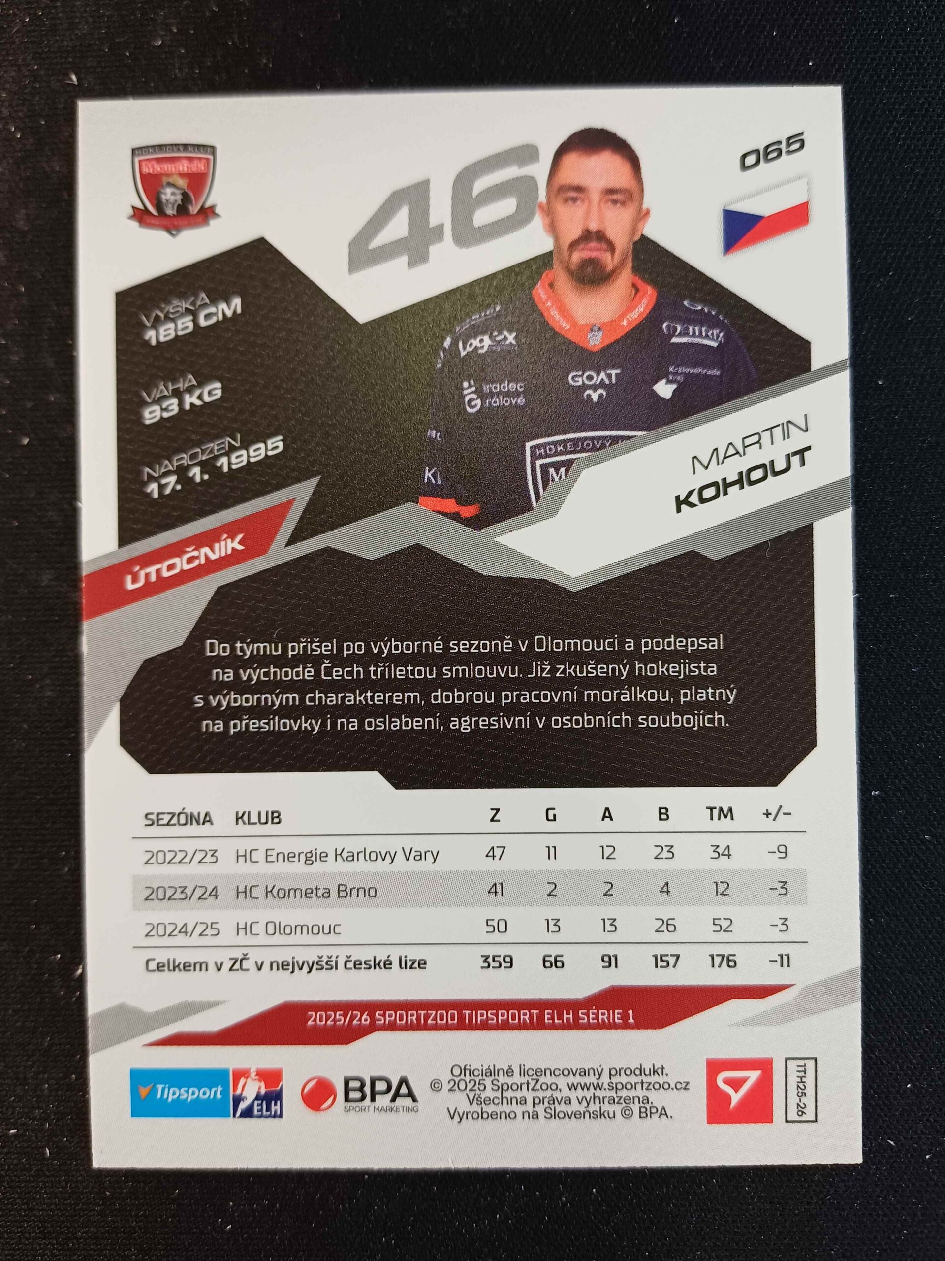 Sběratelská karta 2025/2026 Sportzoo Serie 1 Base 65 Martin Kohout