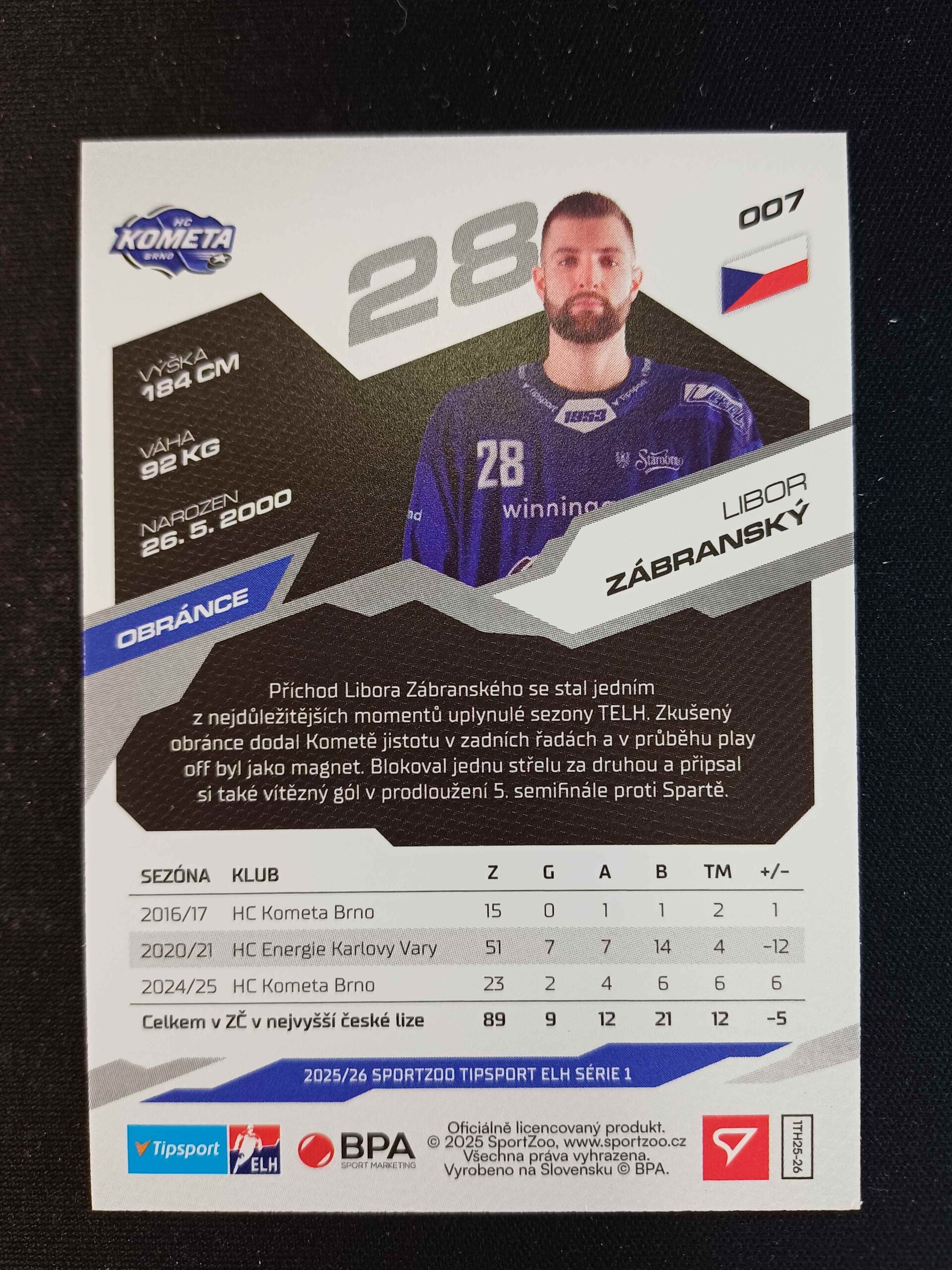 Sběratelská karta 2025/2026 Sportzoo Serie 1 Base 7 Libor Zábranský