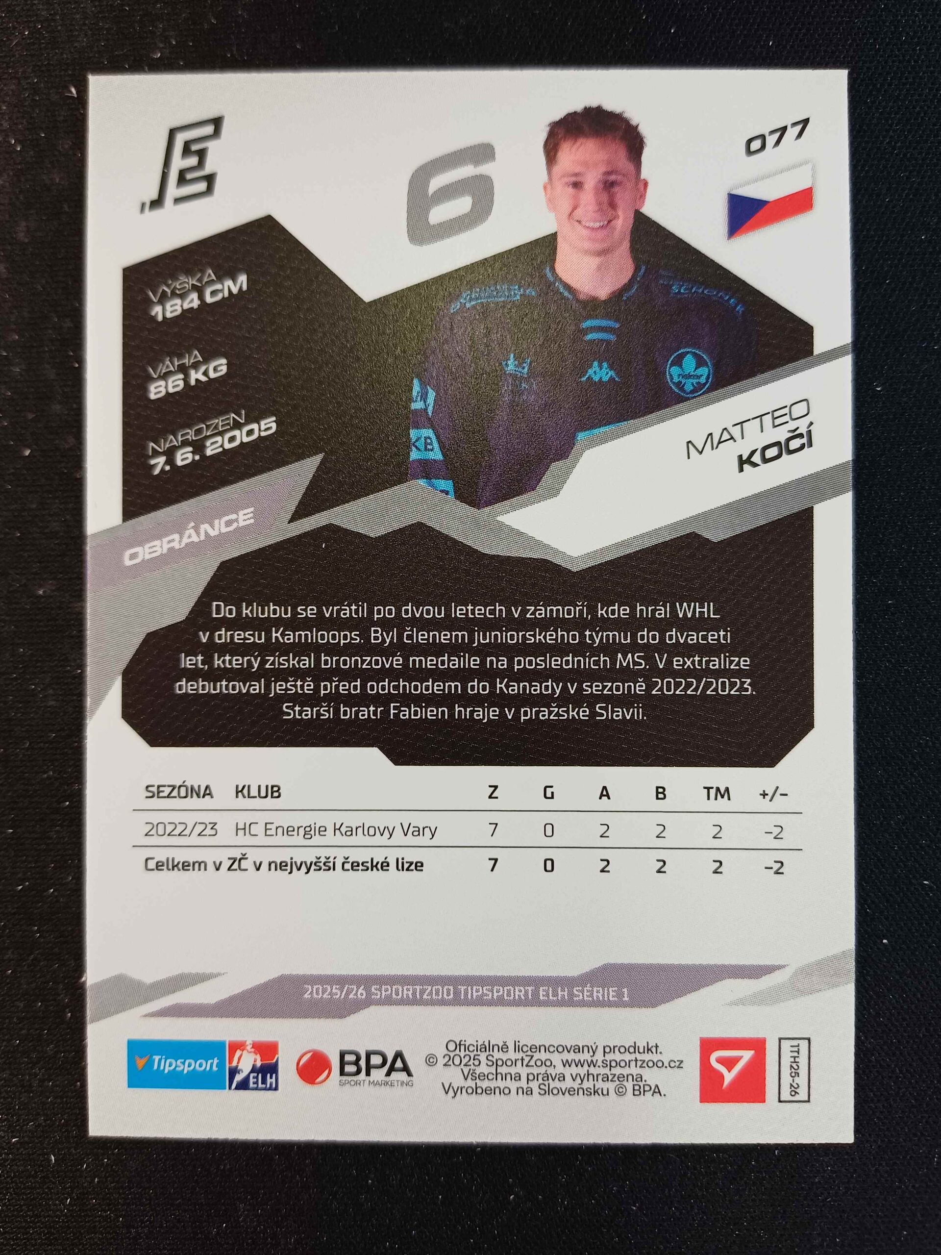 Sběratelská karta 2025/2026 Sportzoo Serie 1 Base 77 Matteo Kočí