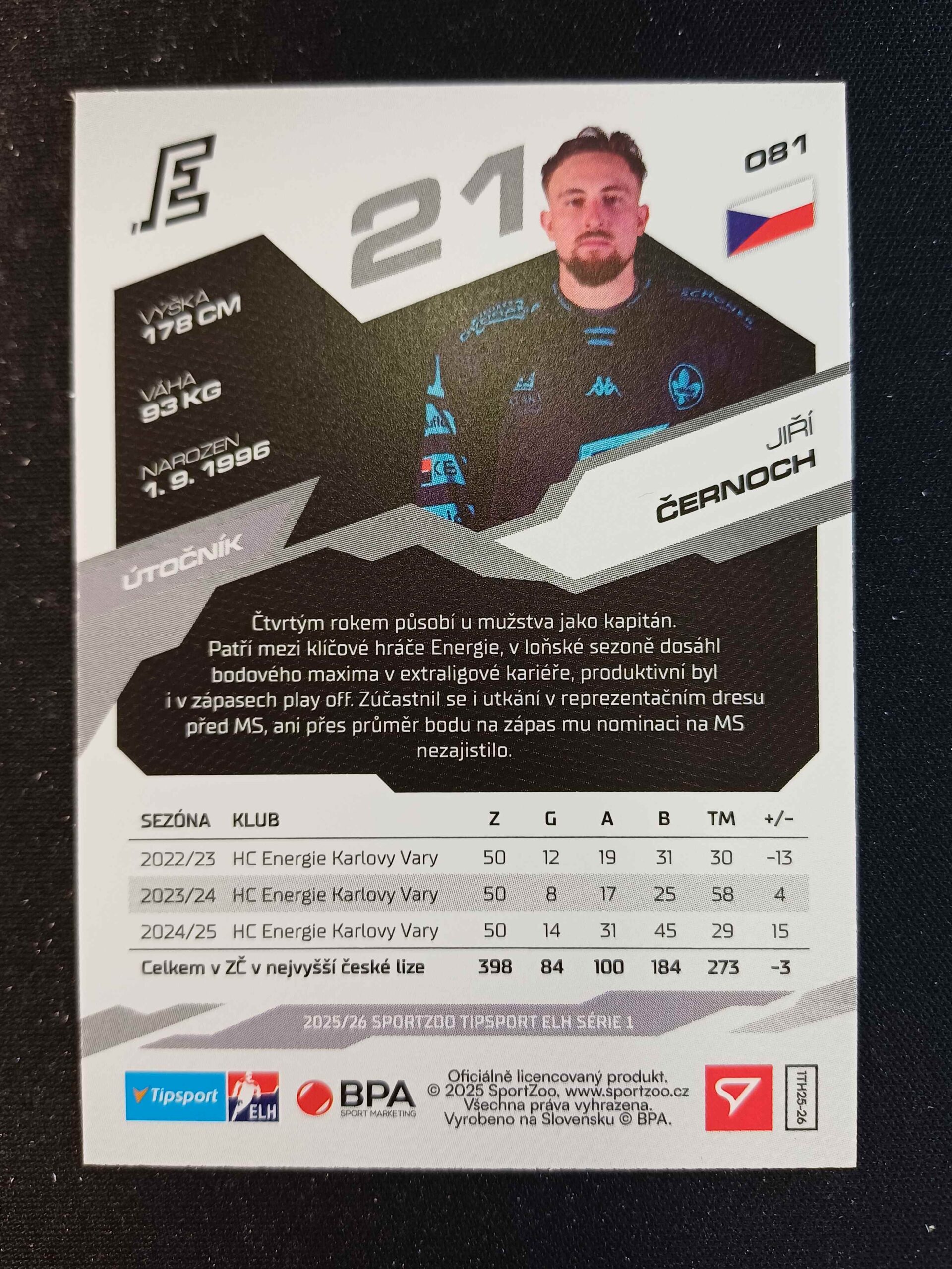 Sběratelská karta 2025/2026 Sportzoo Serie 1 Base 81 Jiří Černoch