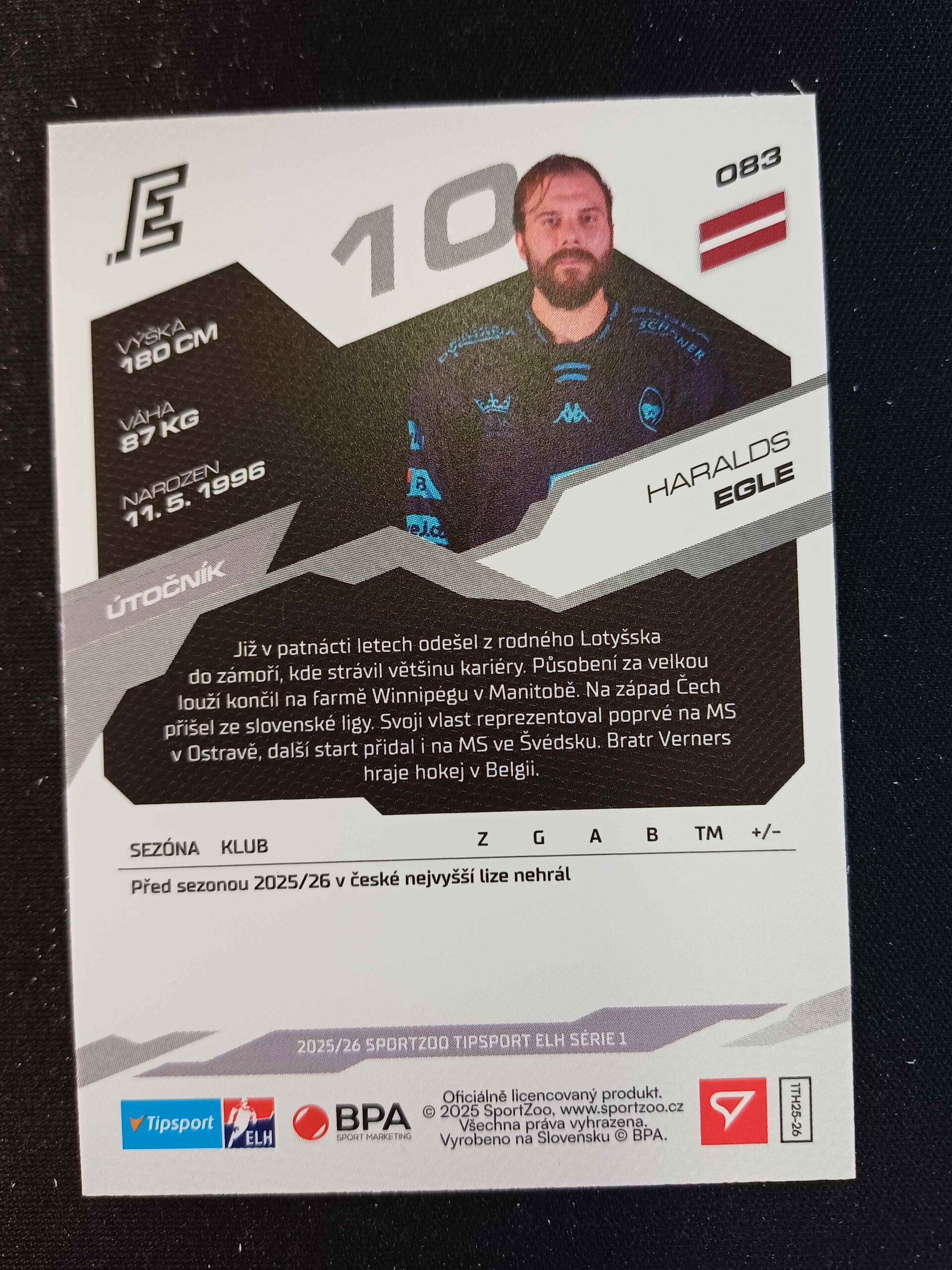 Sběratelská karta 2025/2026 Sportzoo Serie 1 Base 83 Haralds Egle