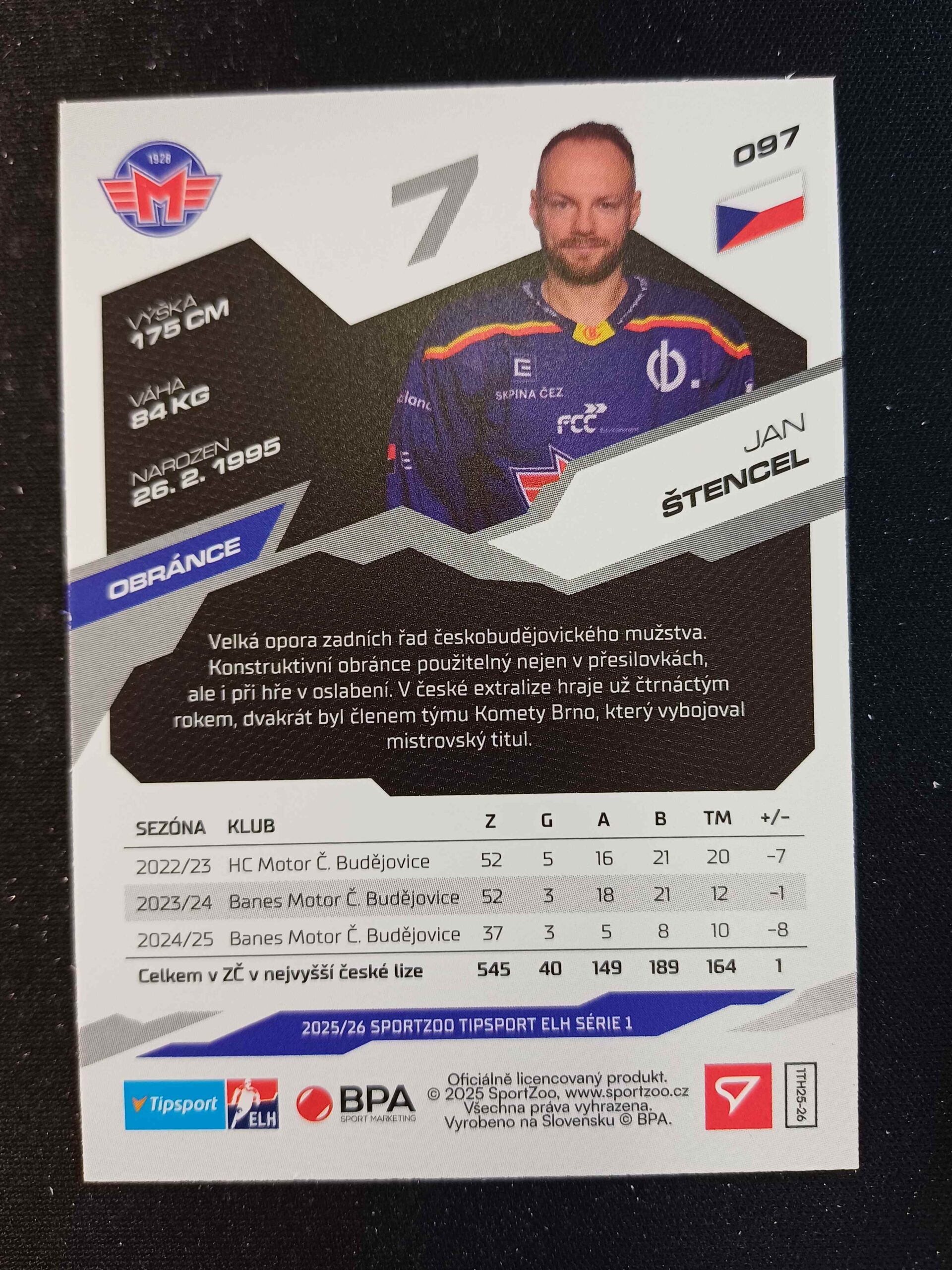 Sběratelská karta 2025/2026 Sportzoo Serie 1 Base 97 Jan Štencel