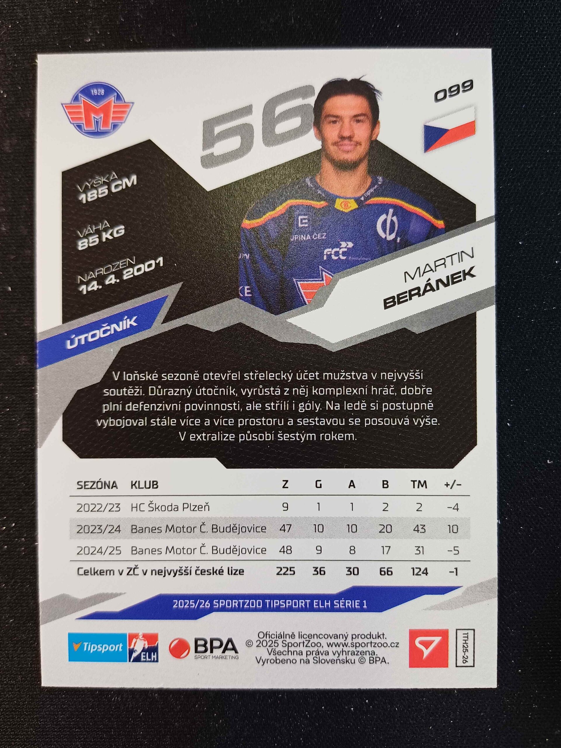 Sběratelská karta 2025/2026 Sportzoo Serie 1 Base 99 Martin Beránek