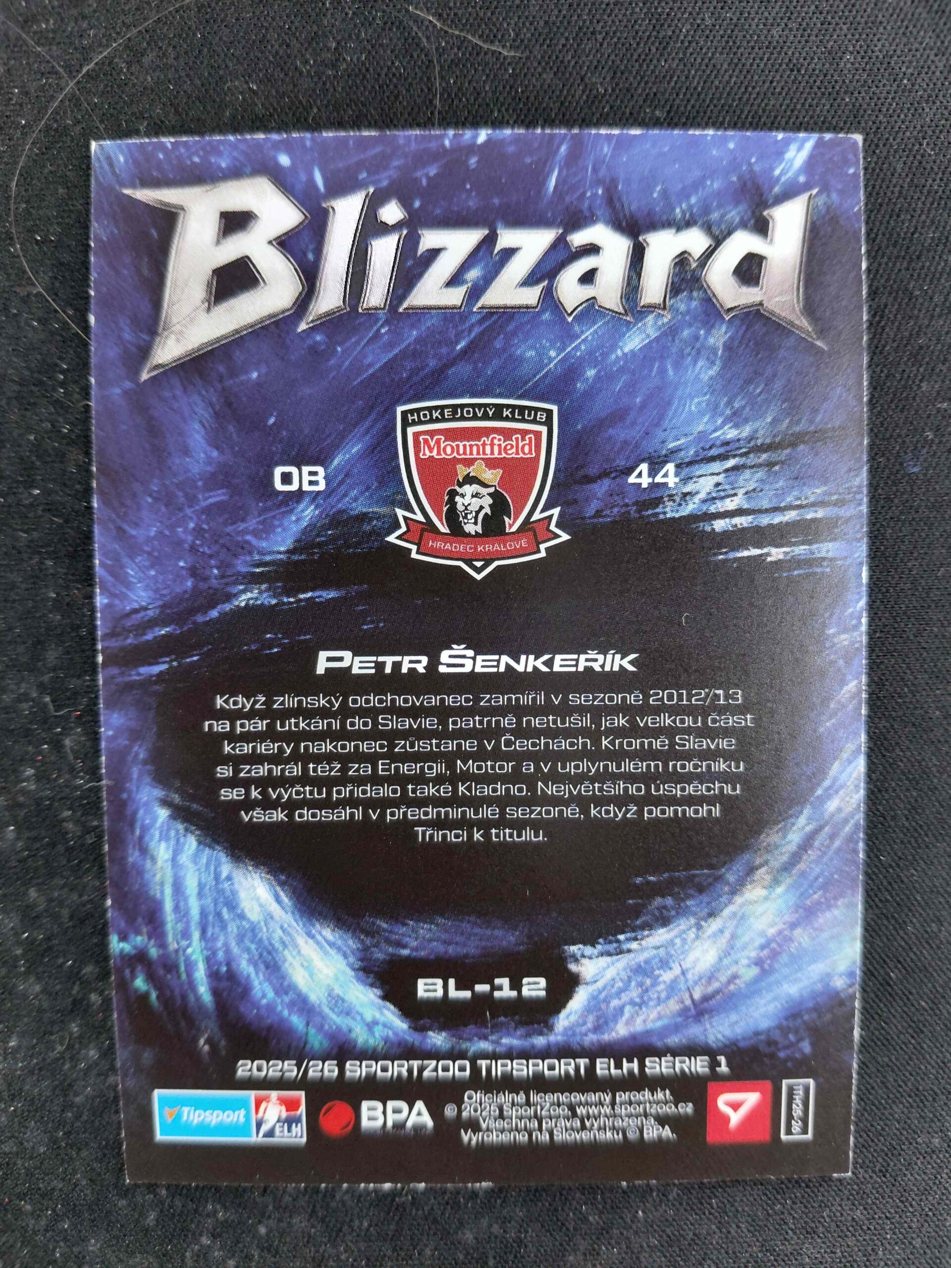 Sběratelská karta 2025/2026 Sportzoo Serie 1 Blizzard BL-12 Petr Šenkeřík Inzert