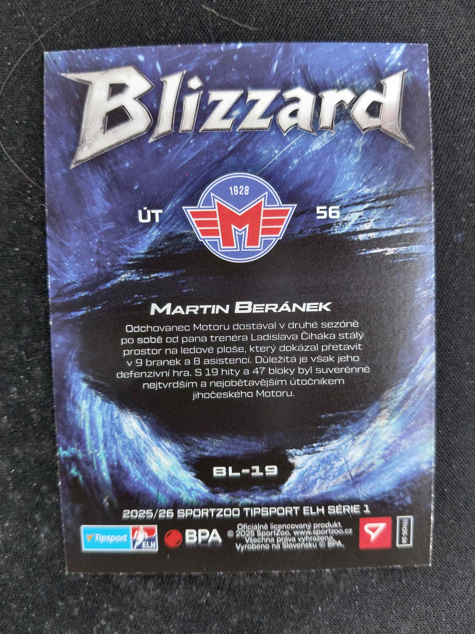 Sběratelská karta 2025/2026 Sportzoo Serie 1 Blizzard BL-19 Martin Beránek Inzert