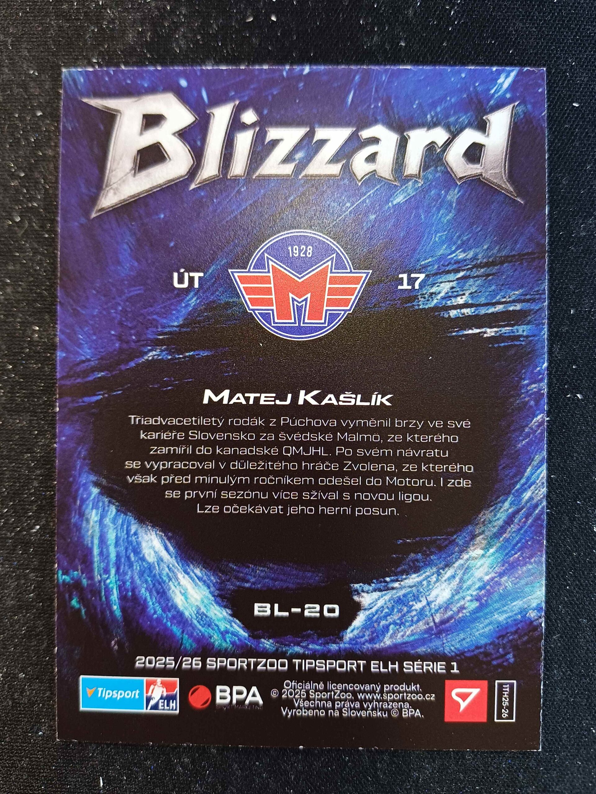 Sběratelská karta 2025/2026 Sportzoo Serie 1 Blizzard BL-20 Matej Kašlík Inzert
