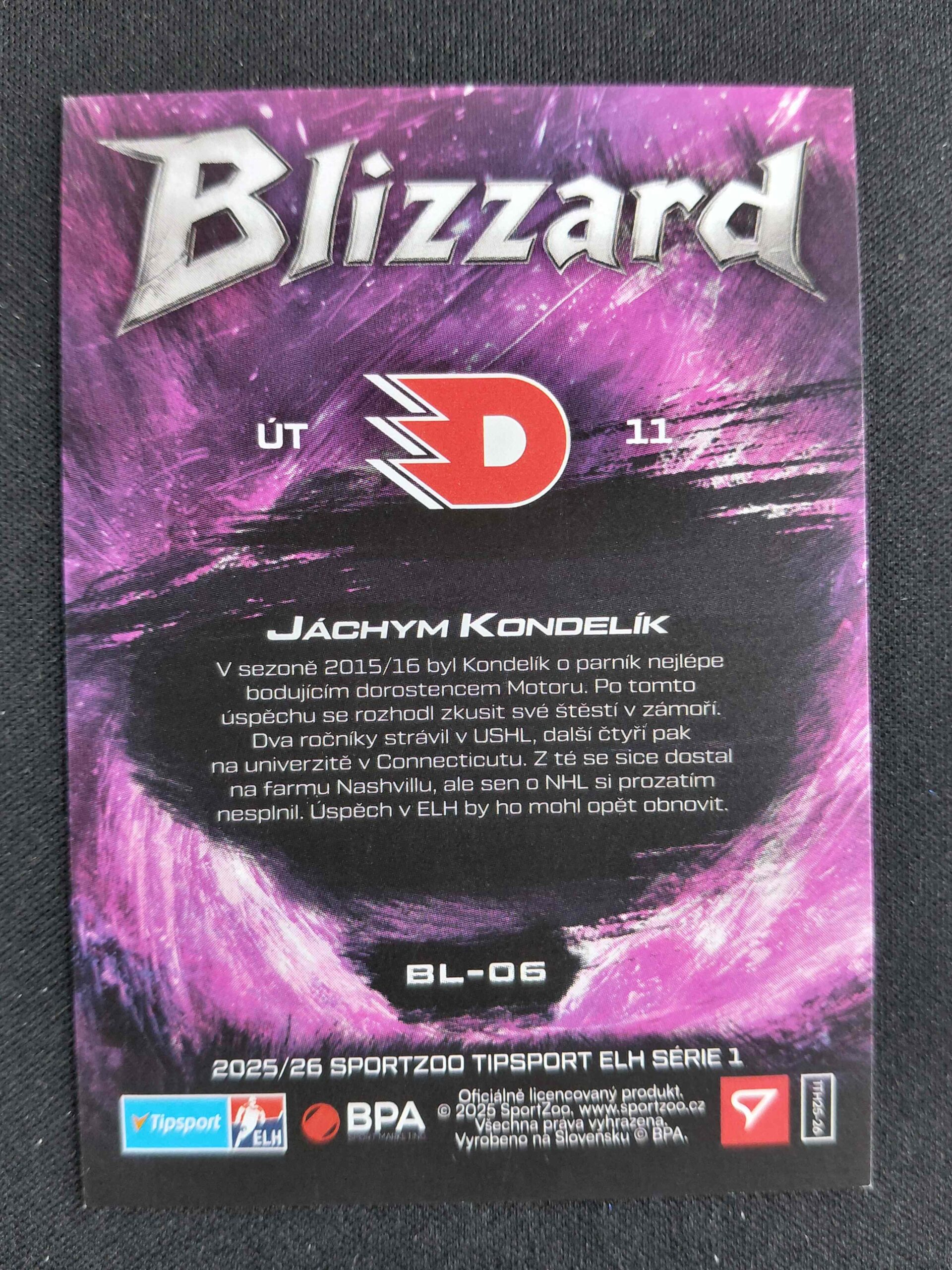 Sběratelská karta 2025/2026 Sportzoo Serie 1 Blizzard Coral Pink BL-06 Jáchym Kondelík Inzert 20/60