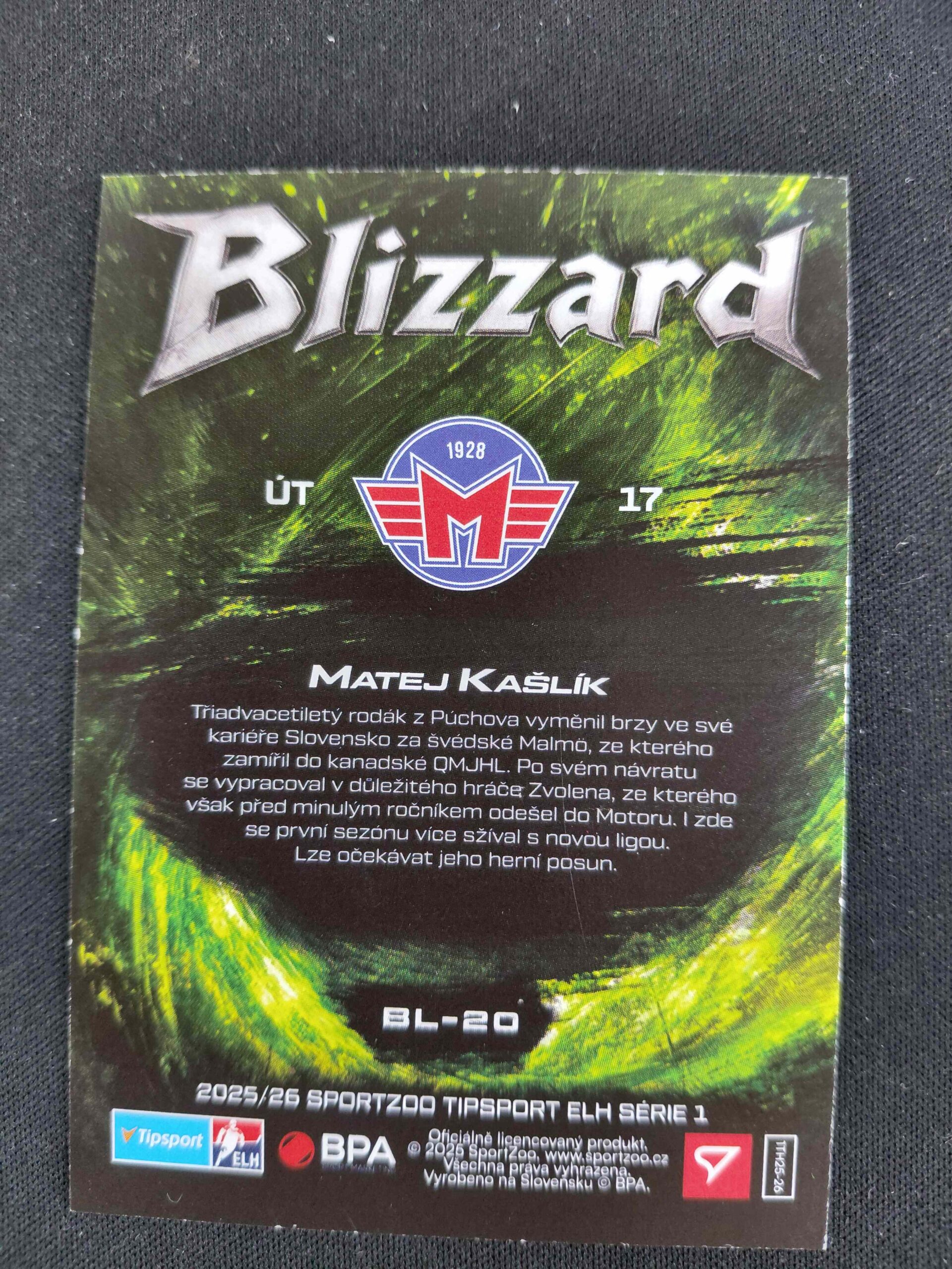 Sběratelská karta 2025/2026 Sportzoo Serie 1 Blizzard Forest Green BL-20 Matej Kašlík Inzert 11/99