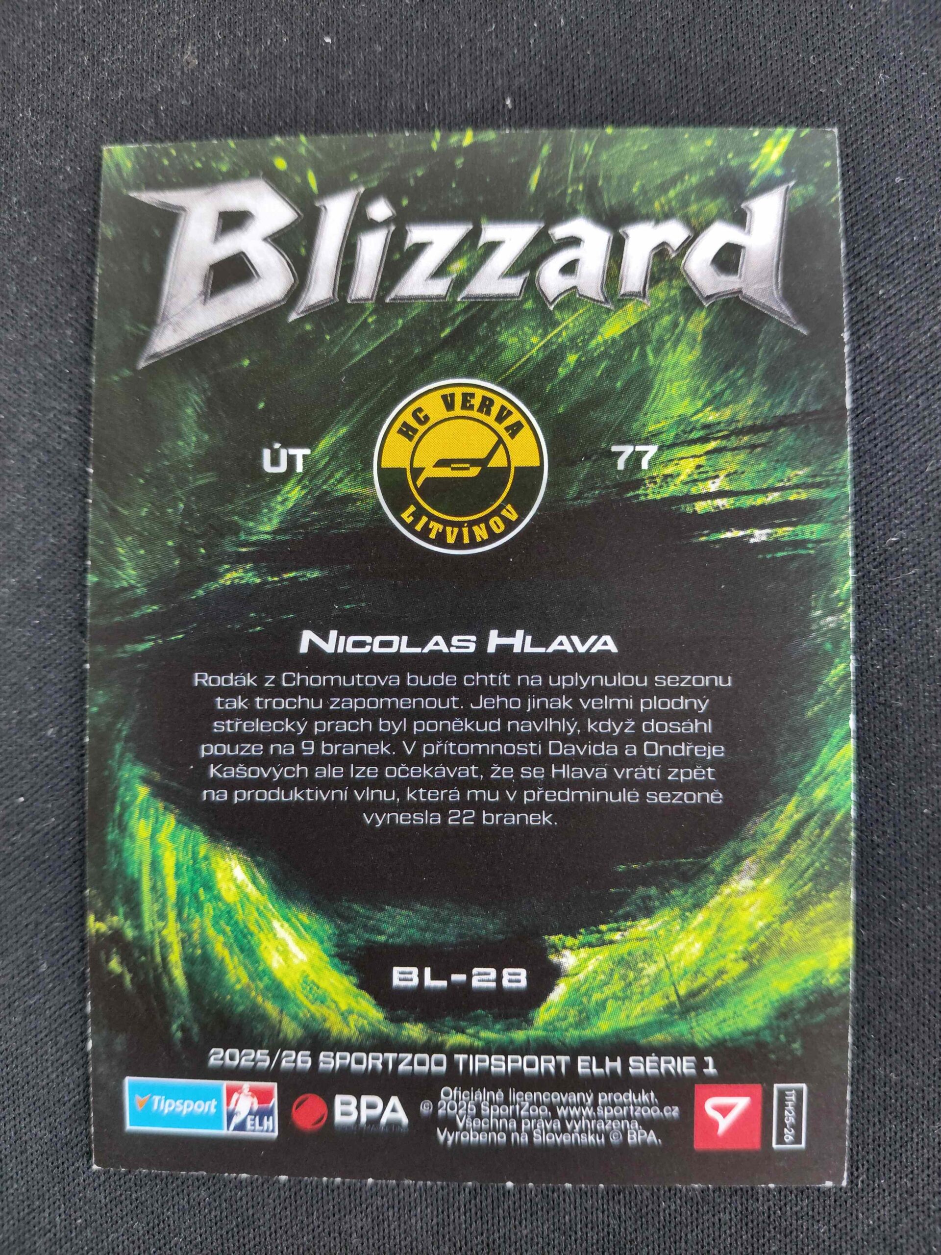 Sběratelská karta 2025/2026 Sportzoo Serie 1 Blizzard Forest Green BL-28 Nicolas Hlava Inzert 90/99