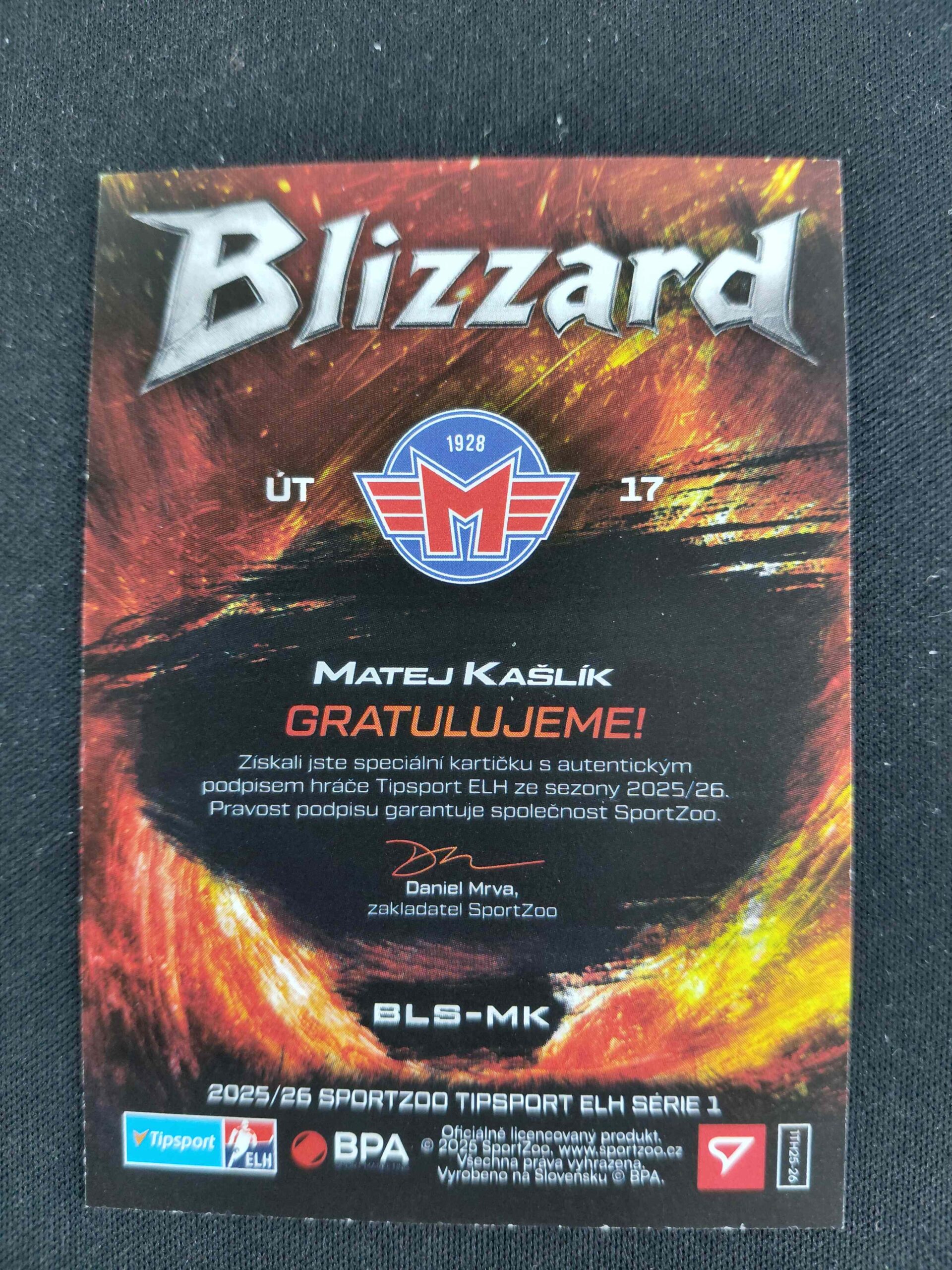 Sběratelská karta 2025/2026 Sportzoo Serie 1 Blizzard Red AUTO BLS-MK Matej Kašlík AUTO 54/55