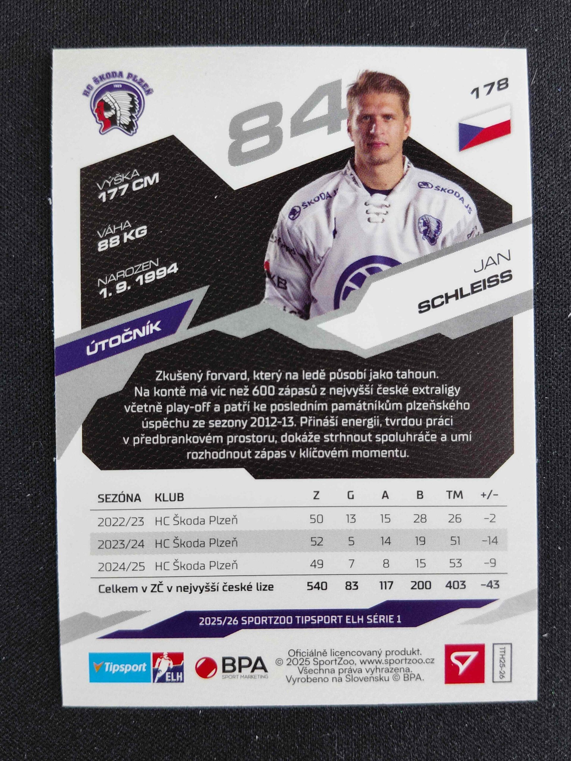 Sběratelská karta 2025/2026 Sportzoo Serie 1 Emerald Green 178 Jan Schleiss Paralel 06/50