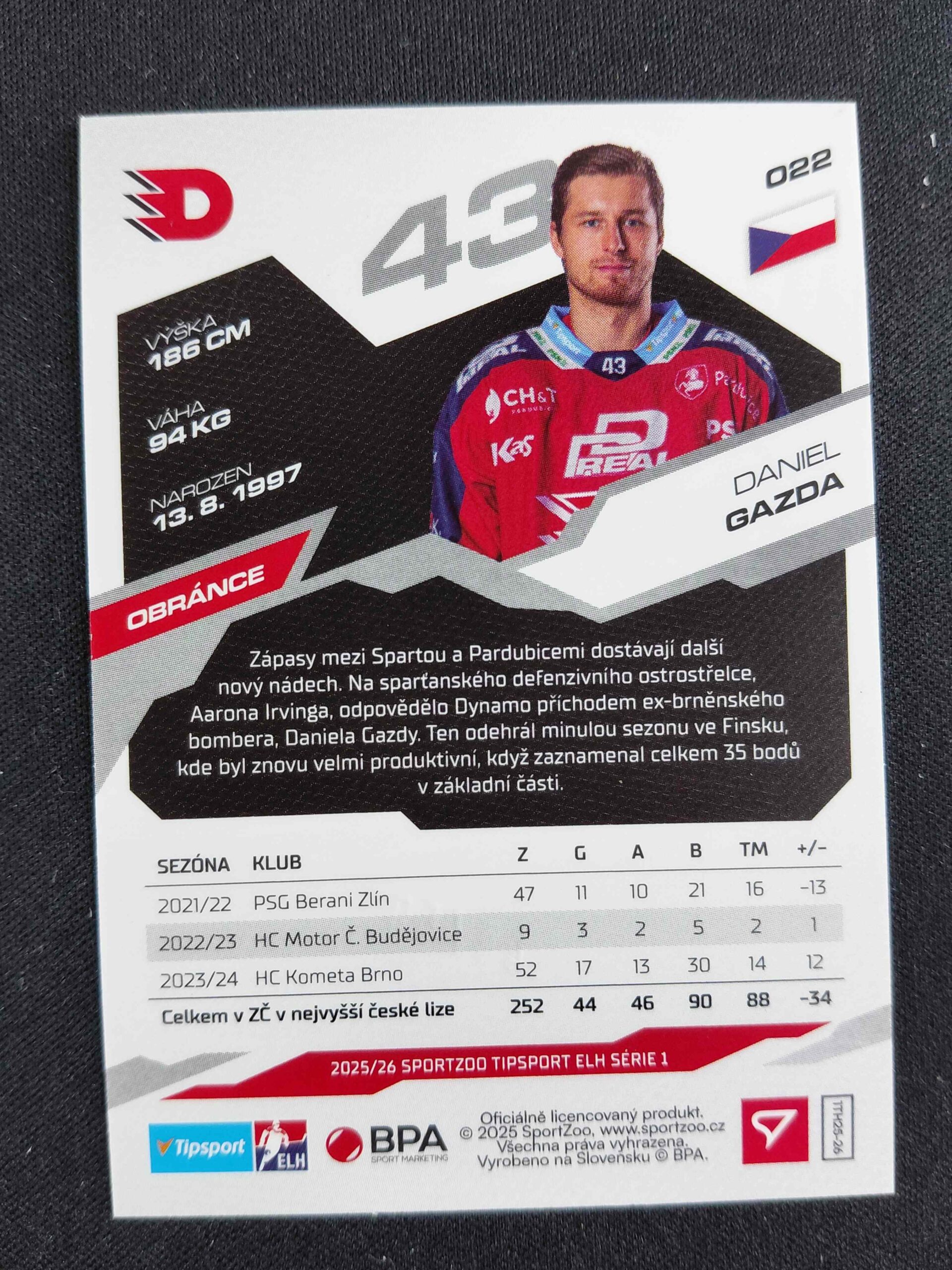 Sběratelská karta 2025/2026 Sportzoo Serie 1 Emerald Green 22 Daniel Gazda Paralel 40/50