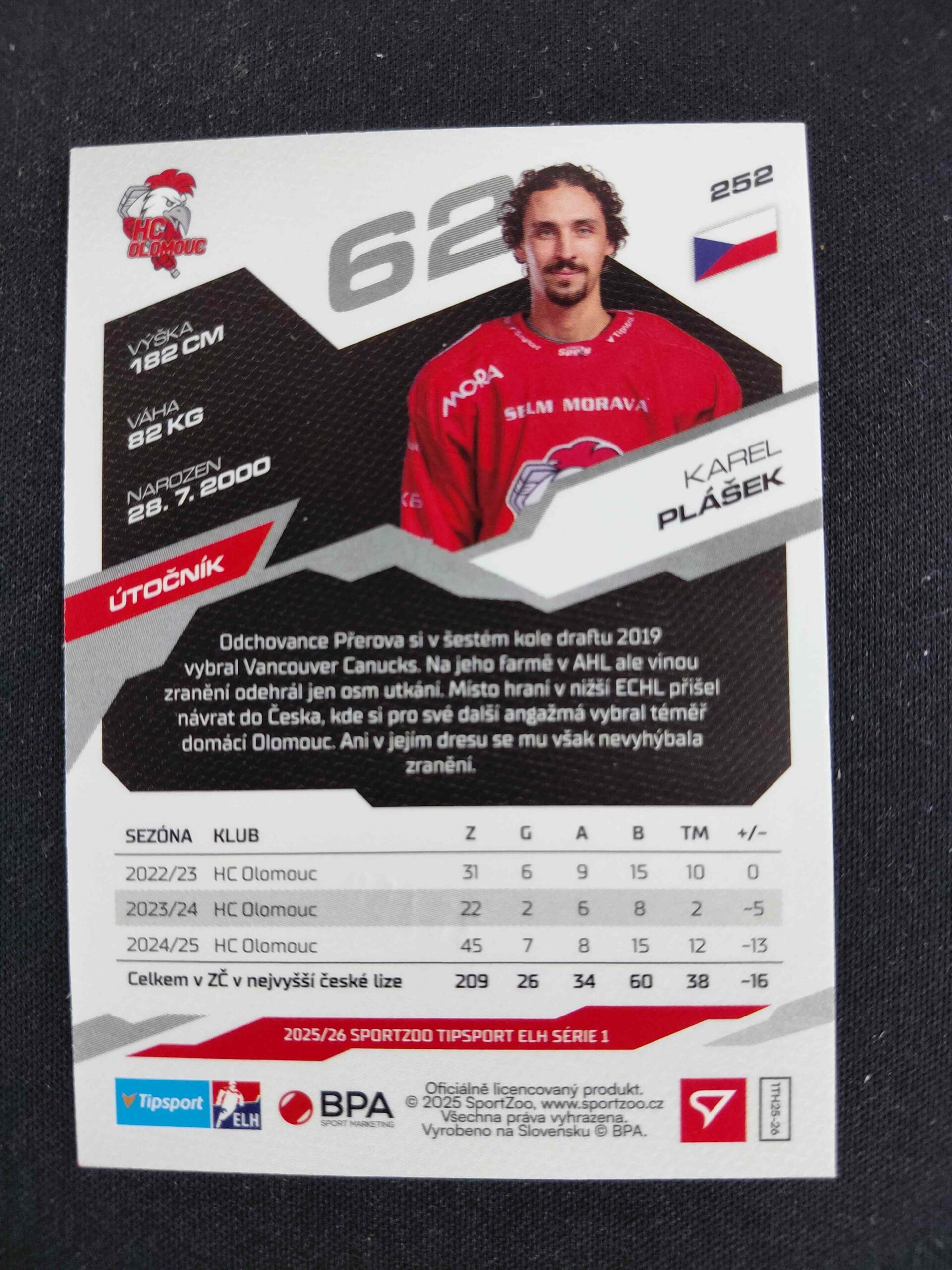 Sběratelská karta 2025/2026 Sportzoo Serie 1 Emerald Green 252 Karel Plášek Paralel 38/50