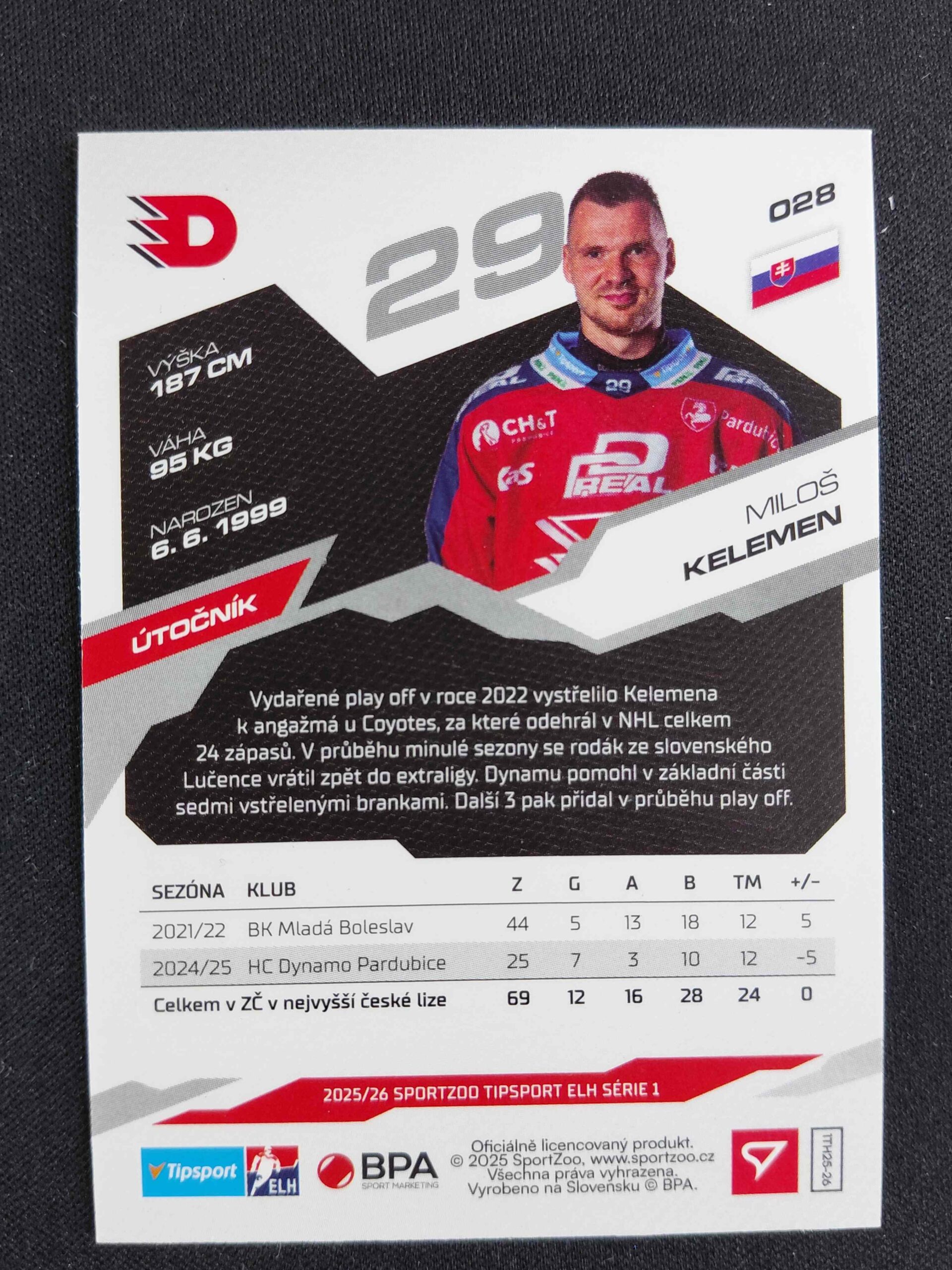 Sběratelská karta 2025/2026 Sportzoo Serie 1 Emerald Green 28 Miloš Kelemen Paralel 17/50