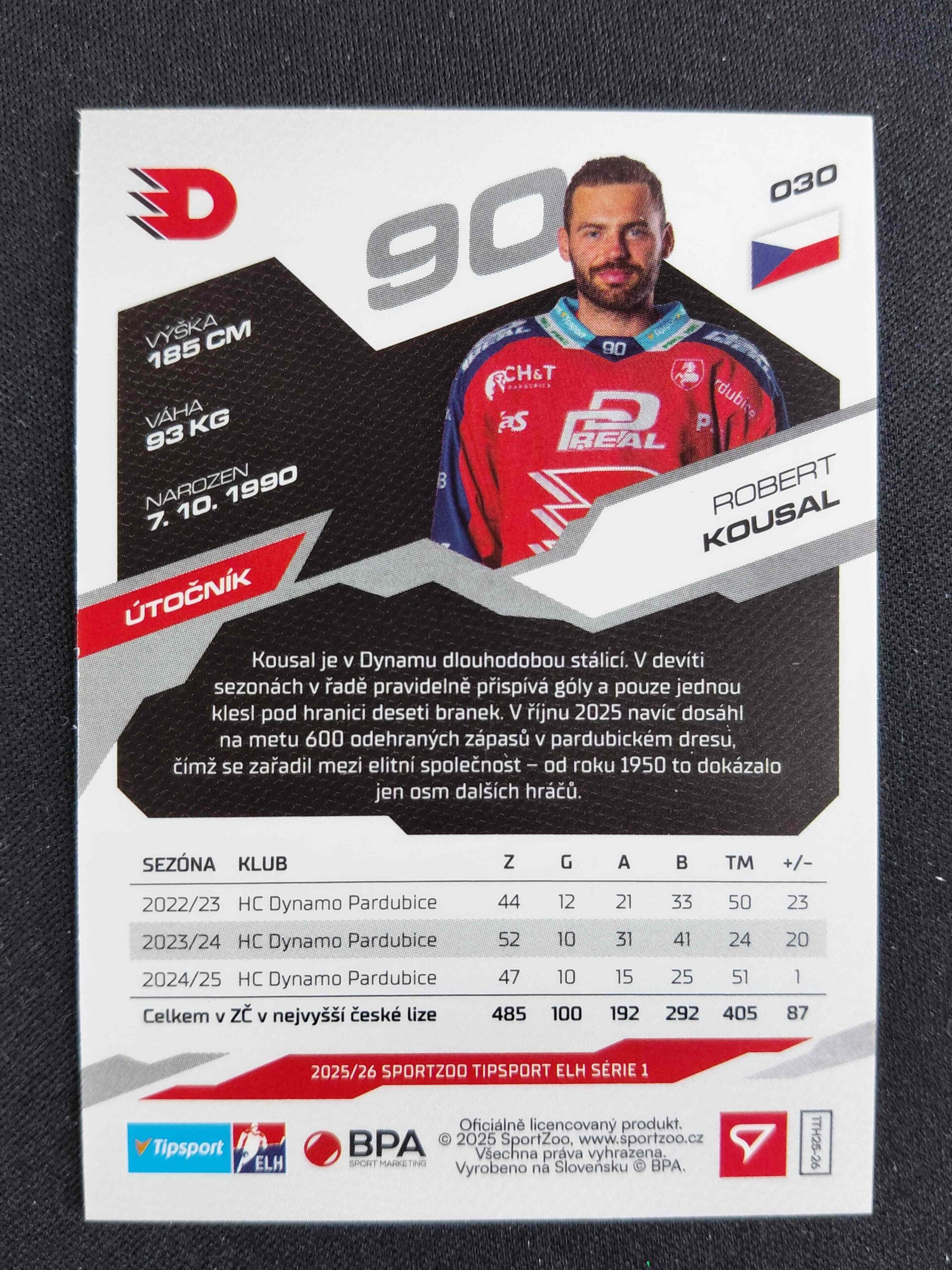 Sběratelská karta 2025/2026 Sportzoo Serie 1 Emerald Green 30 Robert Kousal Paralel 04/50
