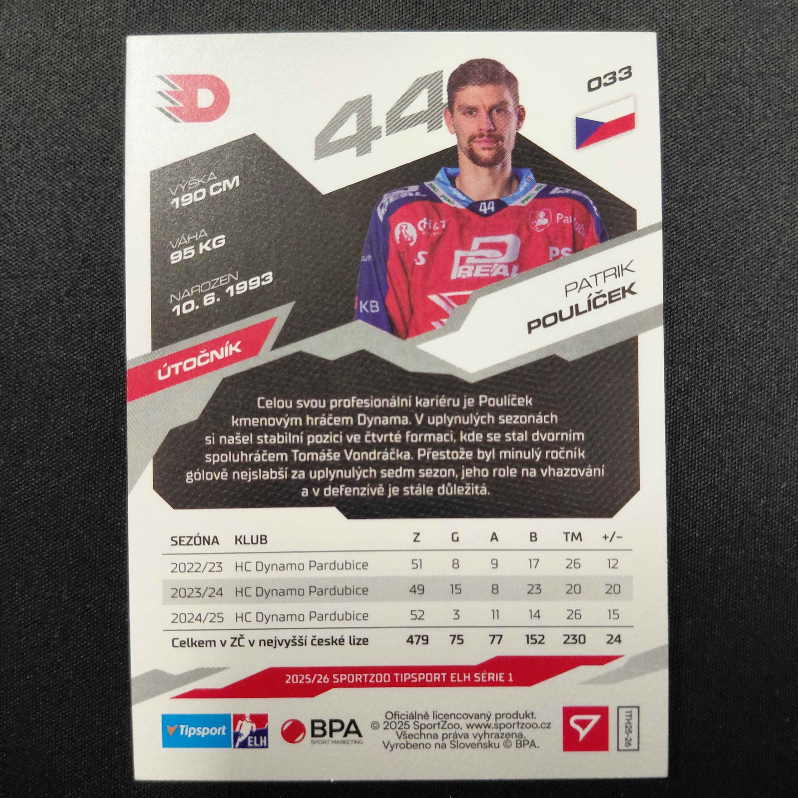 Sběratelská karta 2025/2026 Sportzoo Serie 1 Emerald Green 33 Patrik Poulíček Paralel 09/50